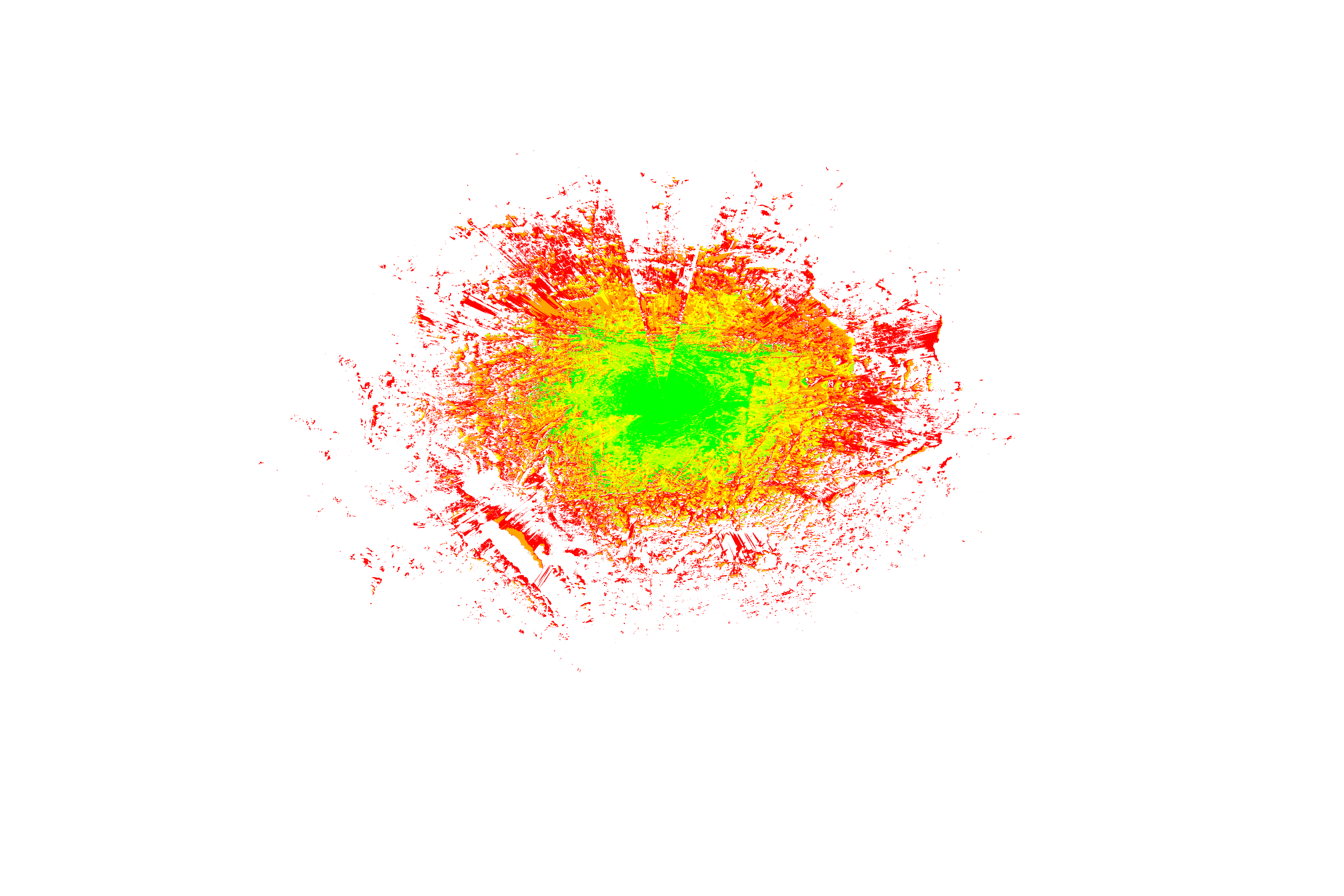 Colorful coverage map which accounts for terrain in a detailed way.