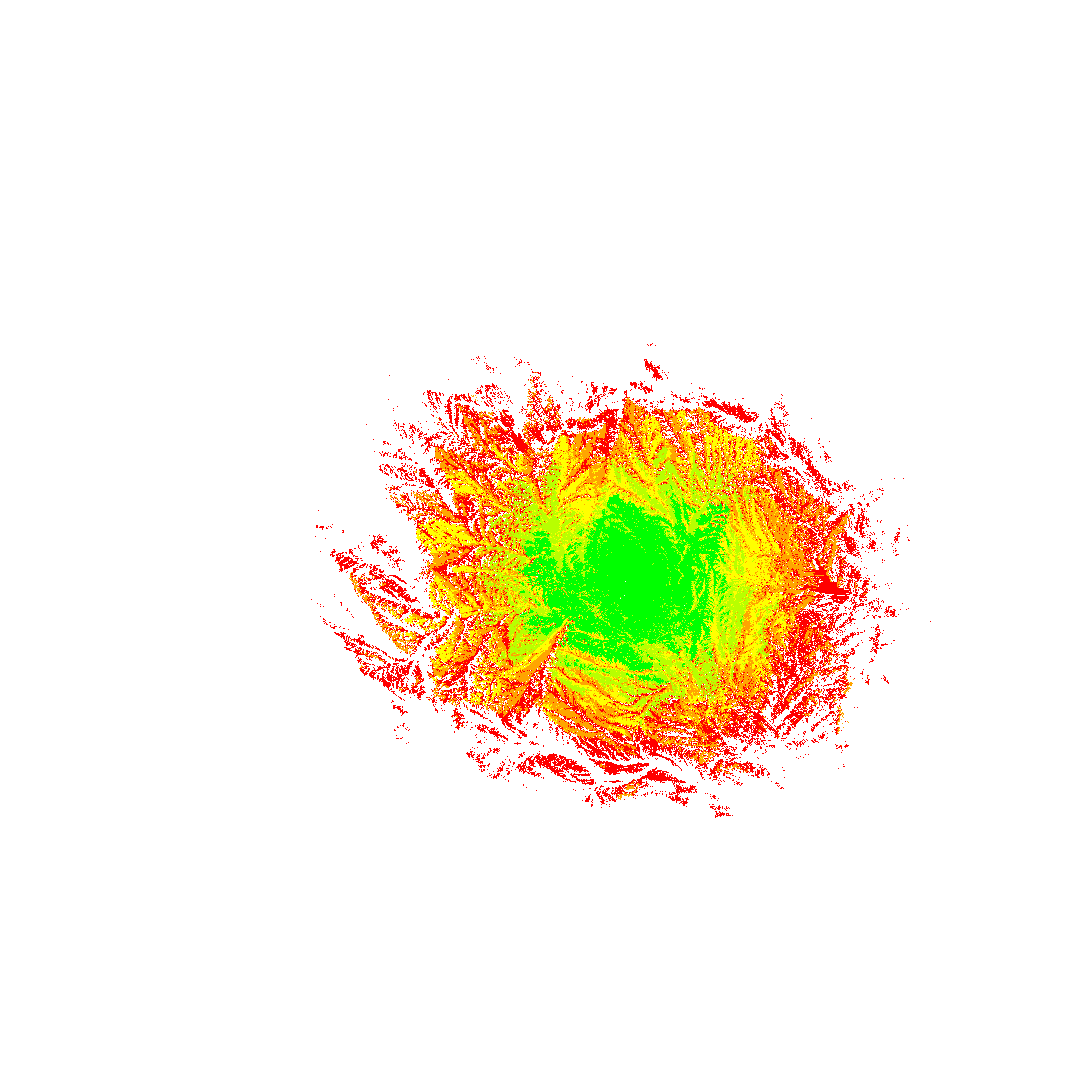 Colorful coverage map which accounts for terrain in a detailed way.