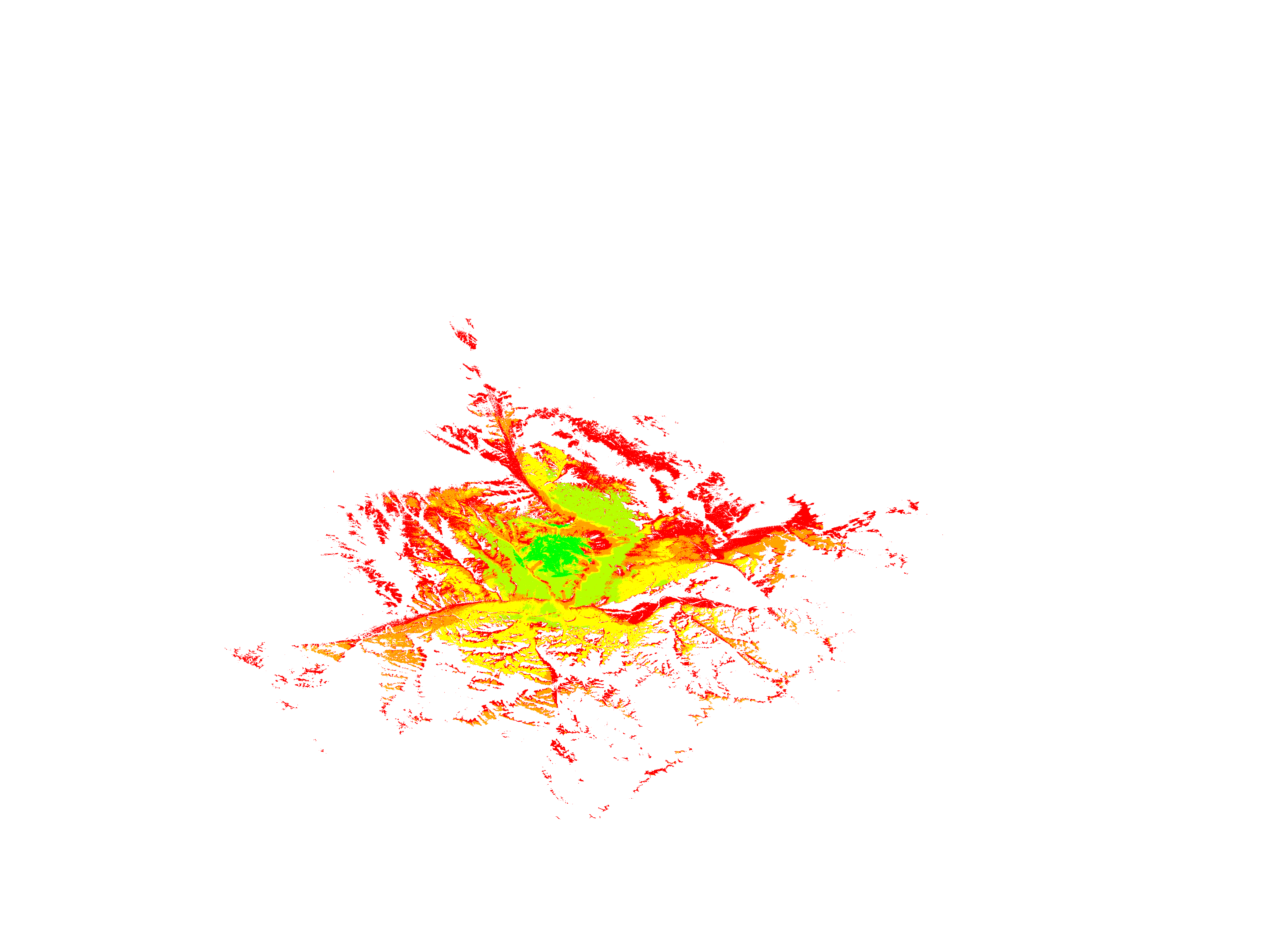Colorful coverage map which accounts for terrain in a detailed way.