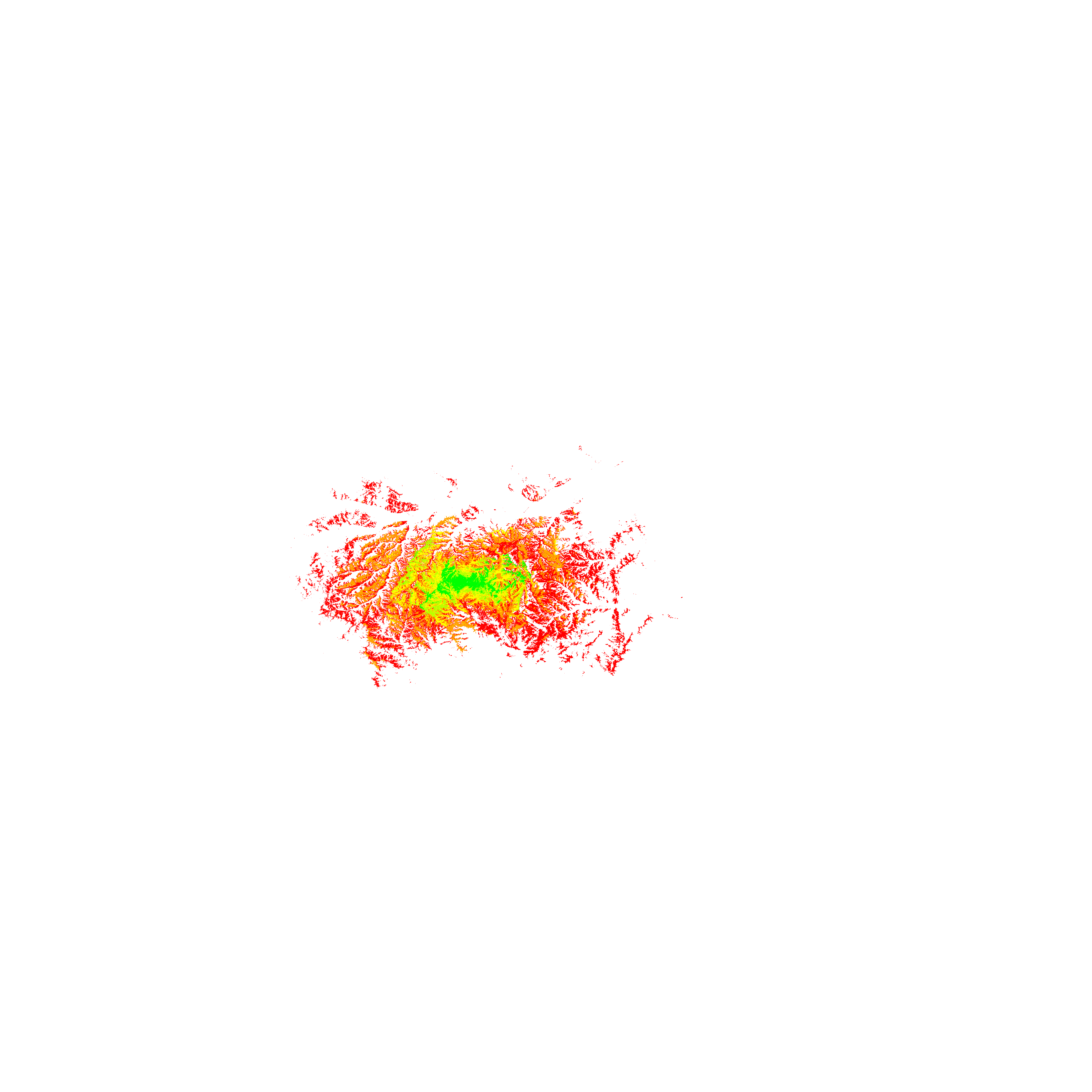 Colorful coverage map which accounts for terrain in a detailed way.
