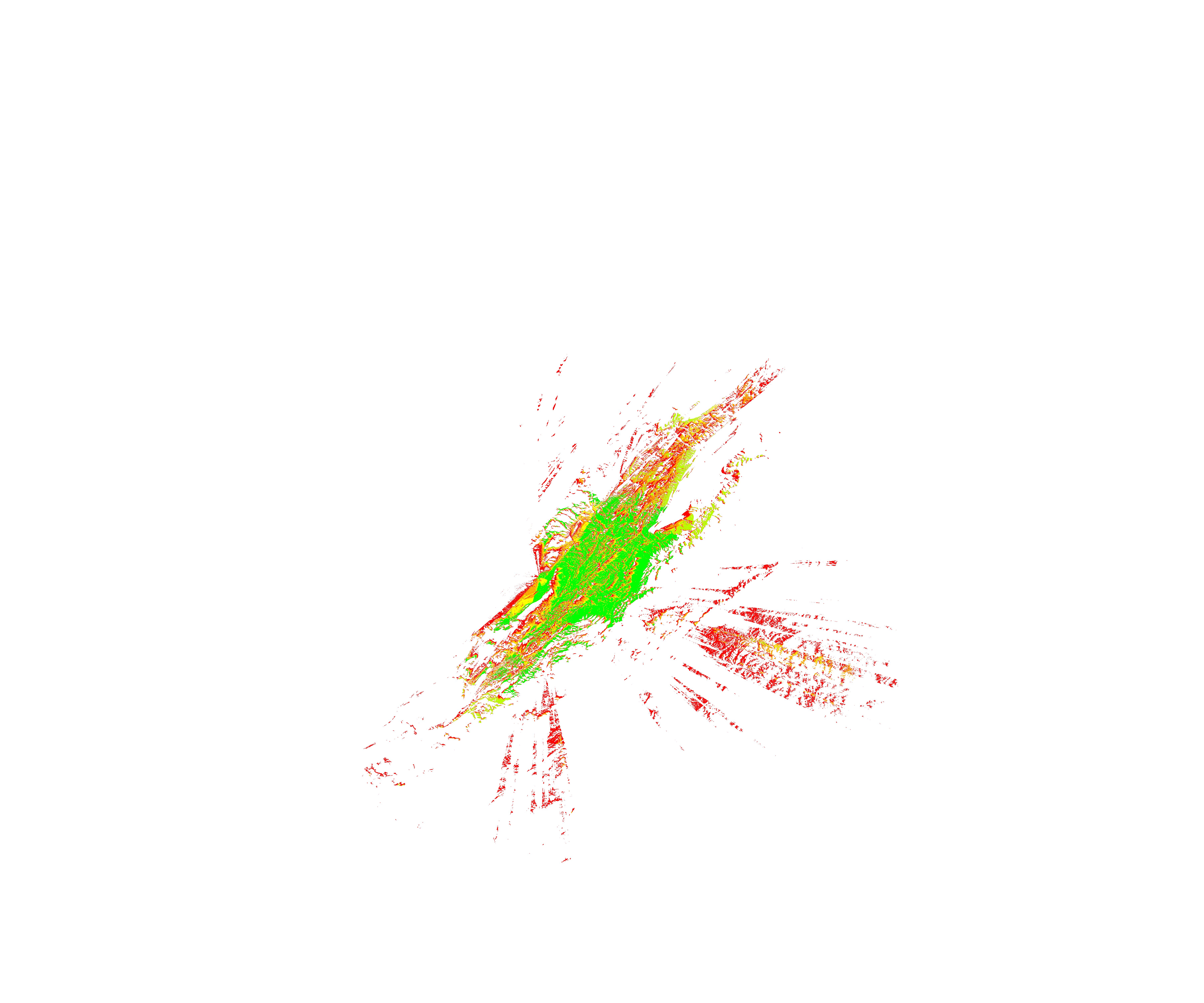 Colorful coverage map which accounts for terrain in a detailed way.