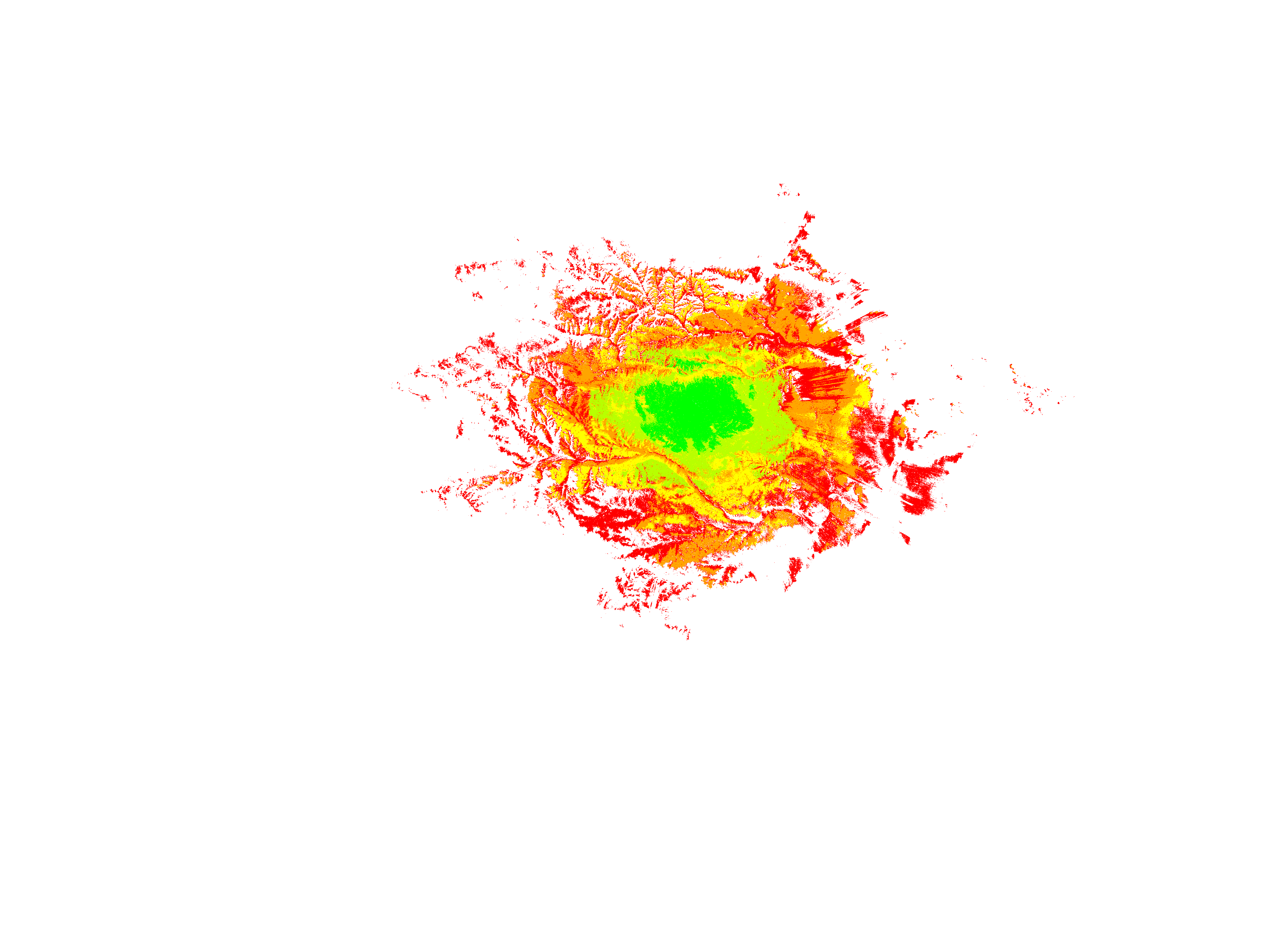 Colorful coverage map which accounts for terrain in a detailed way.