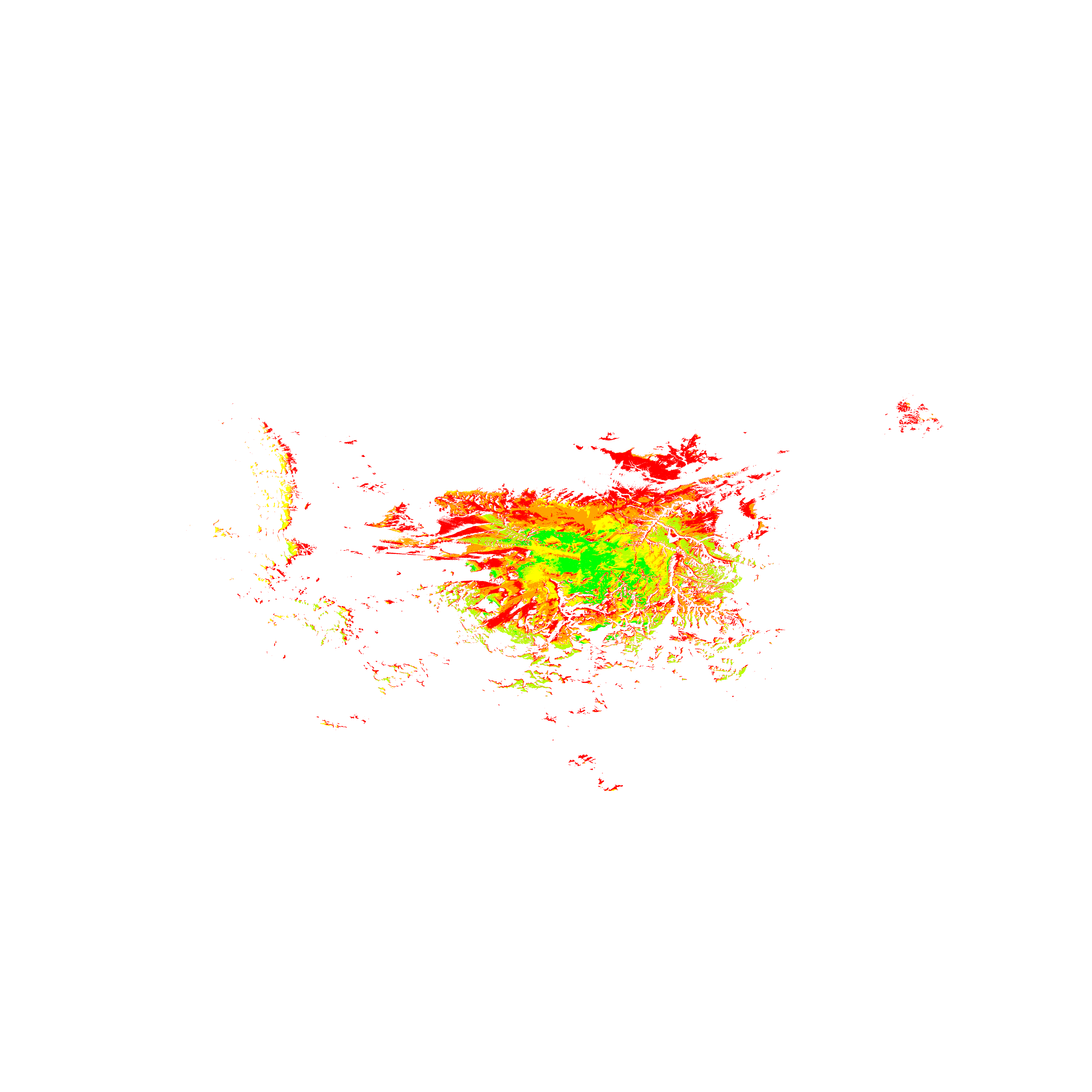 Colorful coverage map which accounts for terrain in a detailed way.