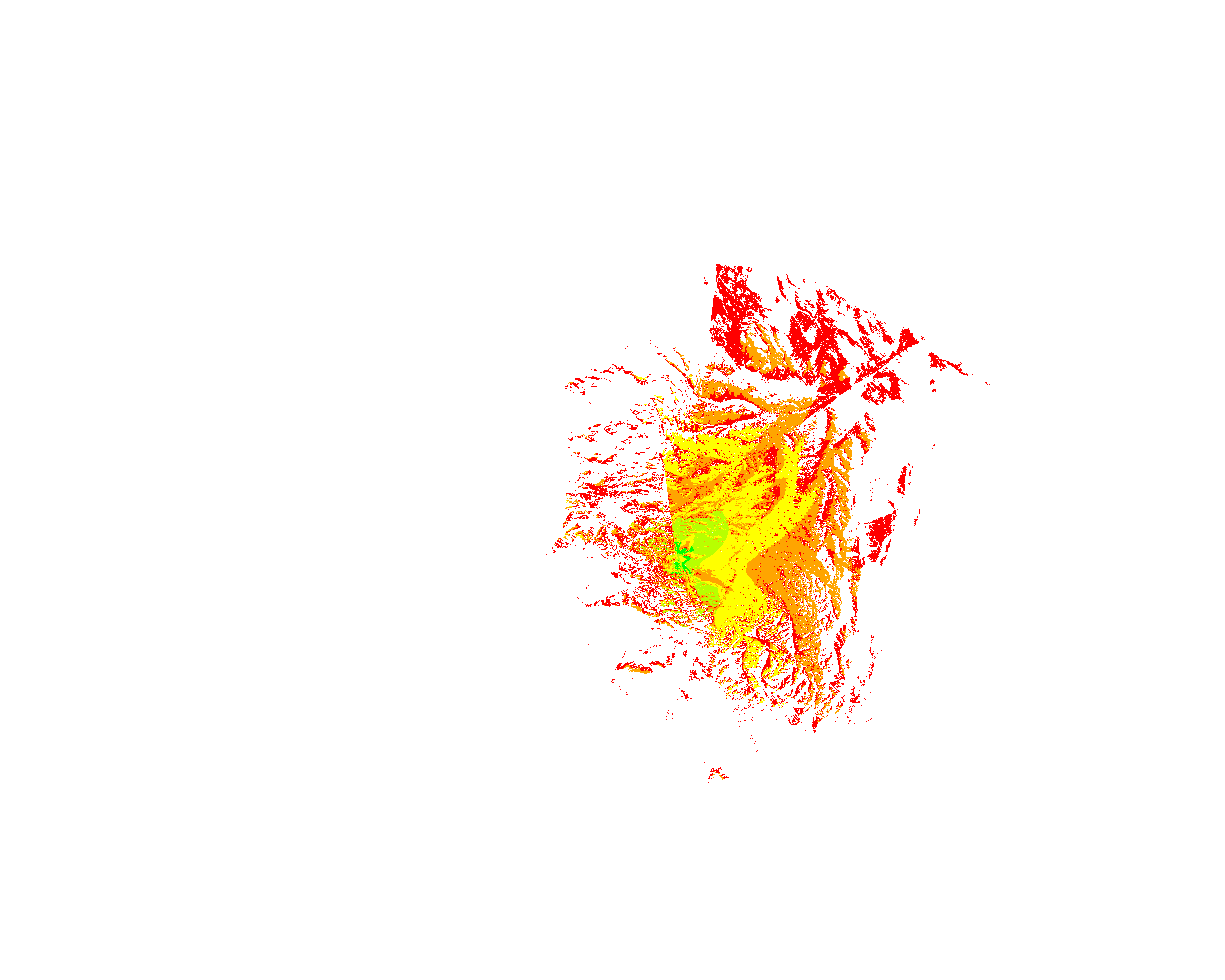 Colorful coverage map which accounts for terrain in a detailed way.