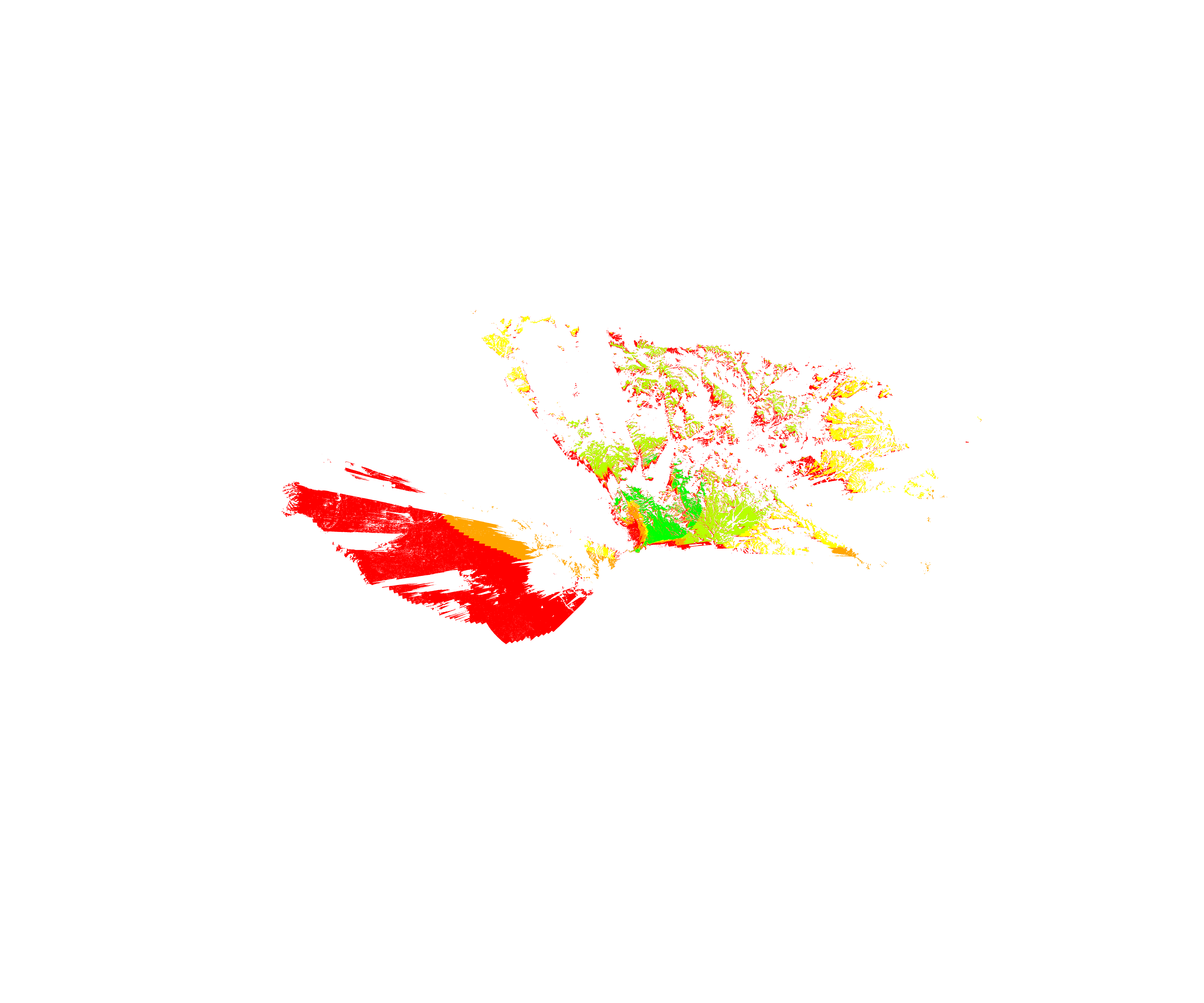 Colorful coverage map which accounts for terrain in a detailed way.