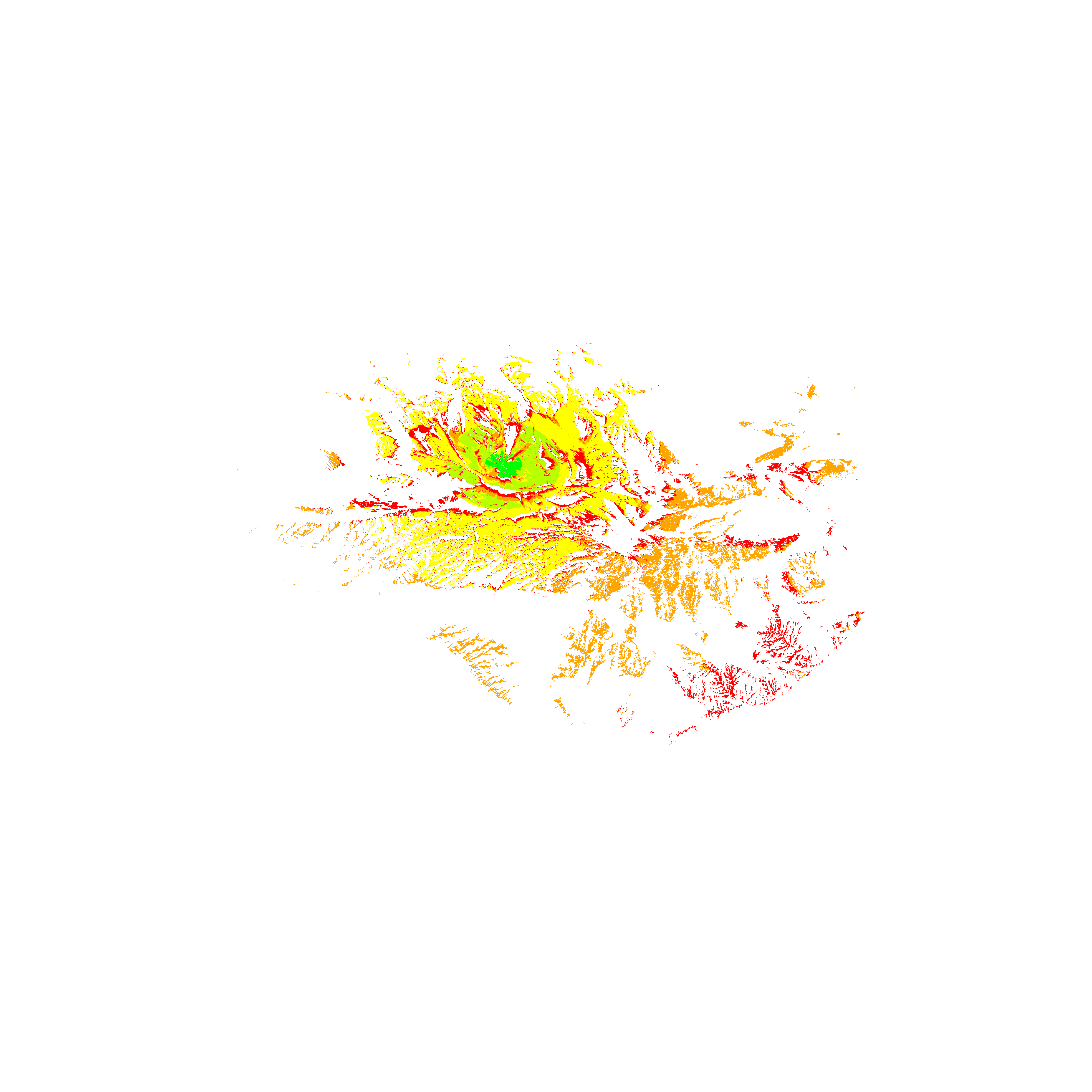 Colorful coverage map which accounts for terrain in a detailed way.