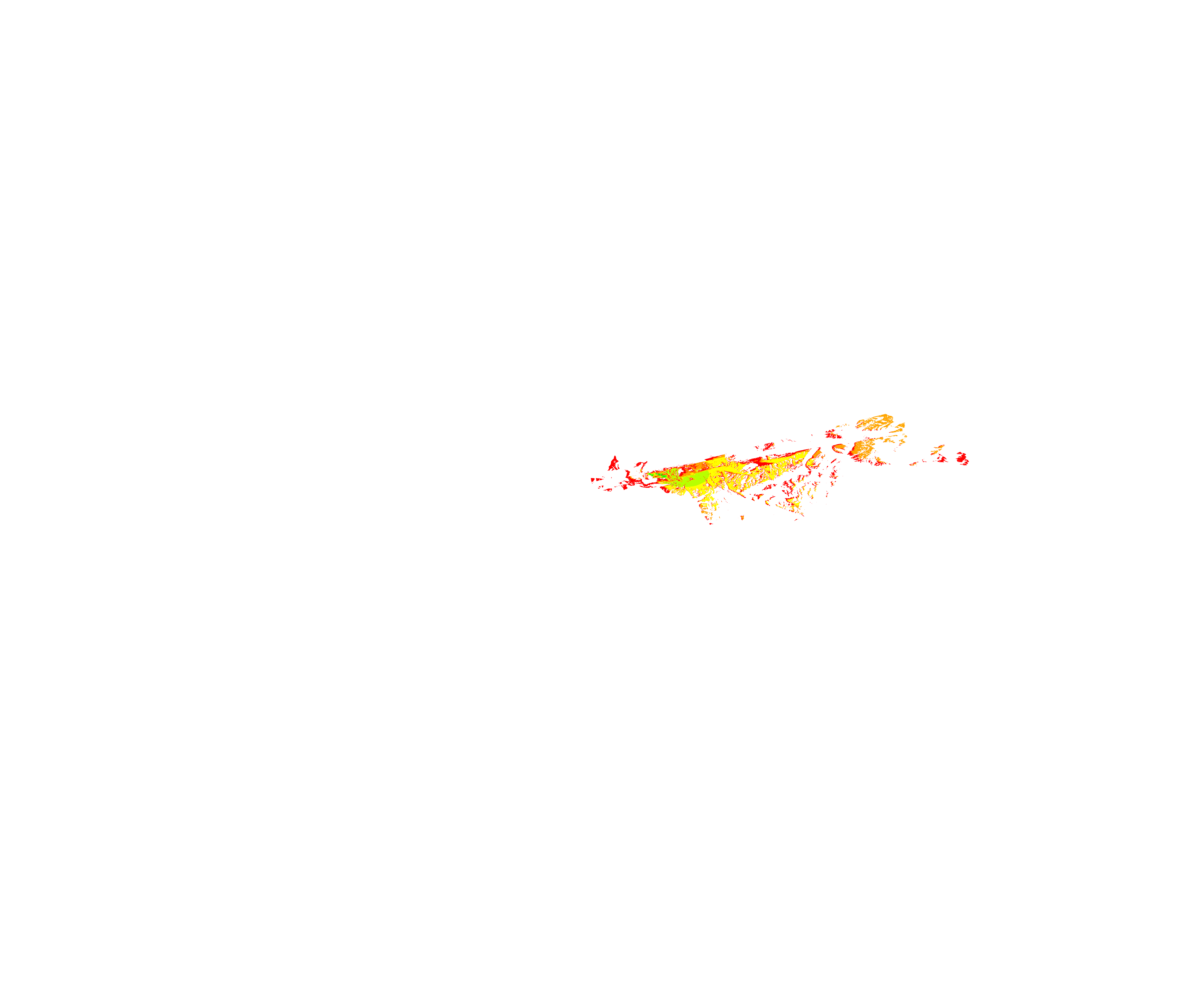 Colorful coverage map which accounts for terrain in a detailed way.
