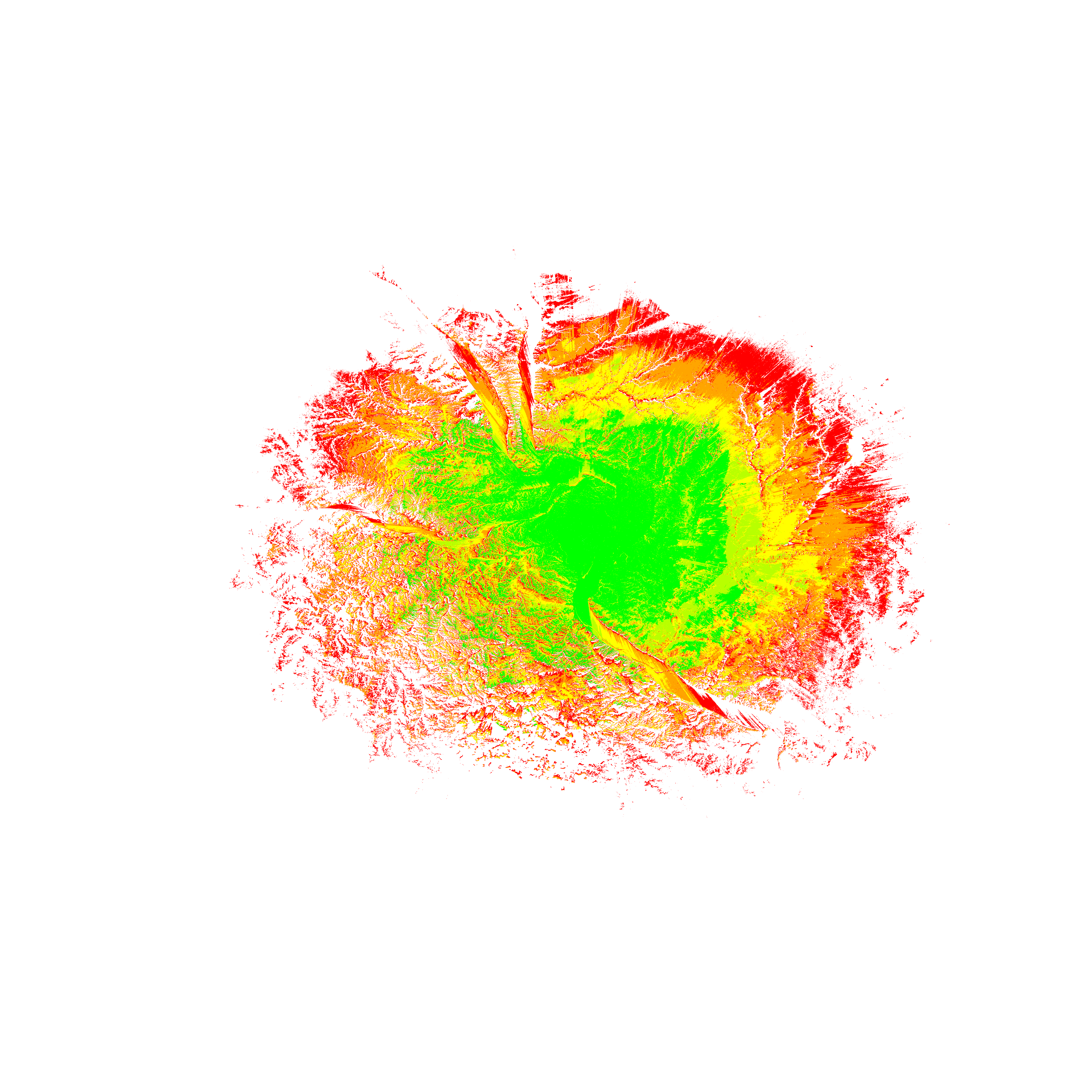 Colorful coverage map which accounts for terrain in a detailed way.