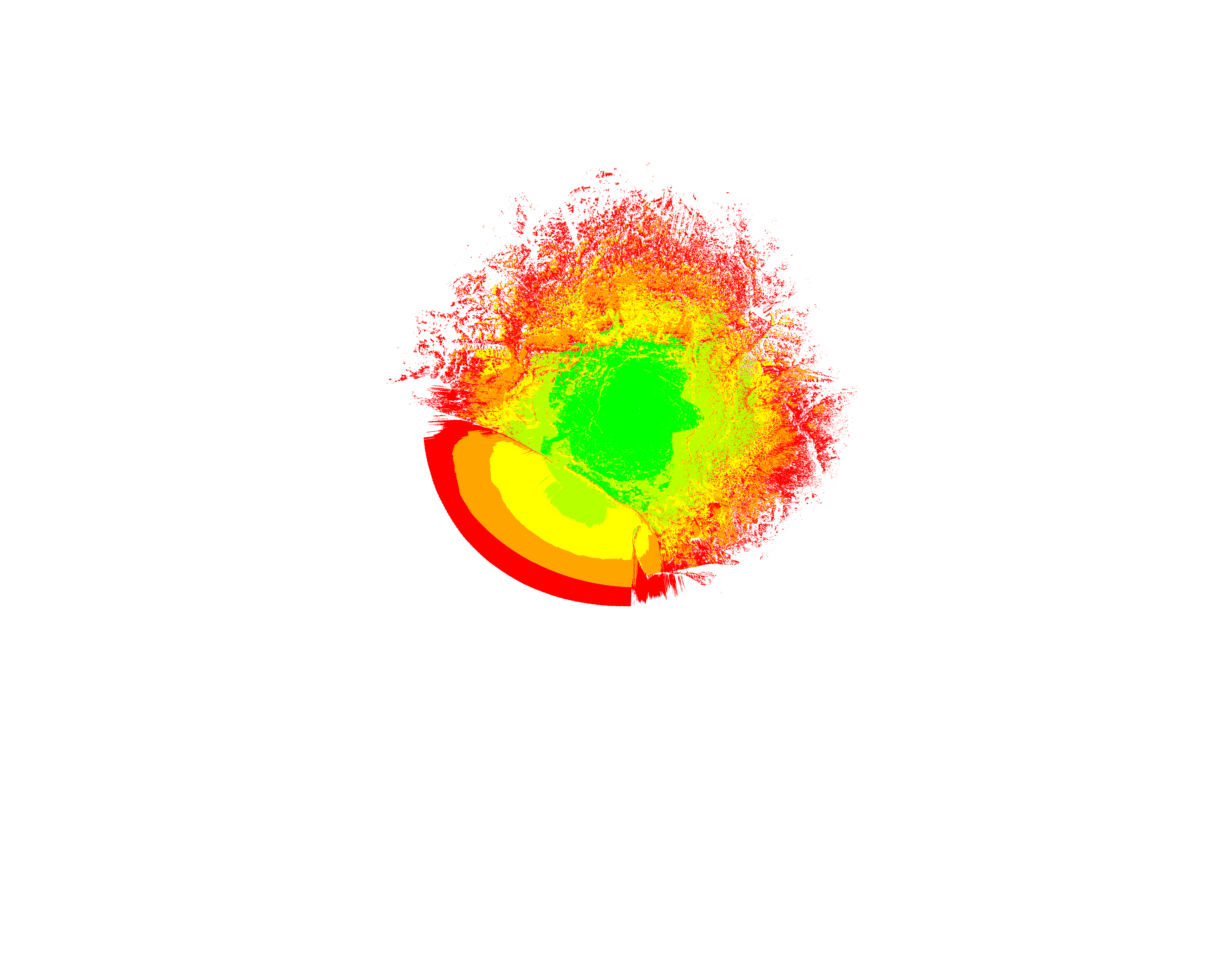 Colorful coverage map which accounts for terrain in a detailed way.