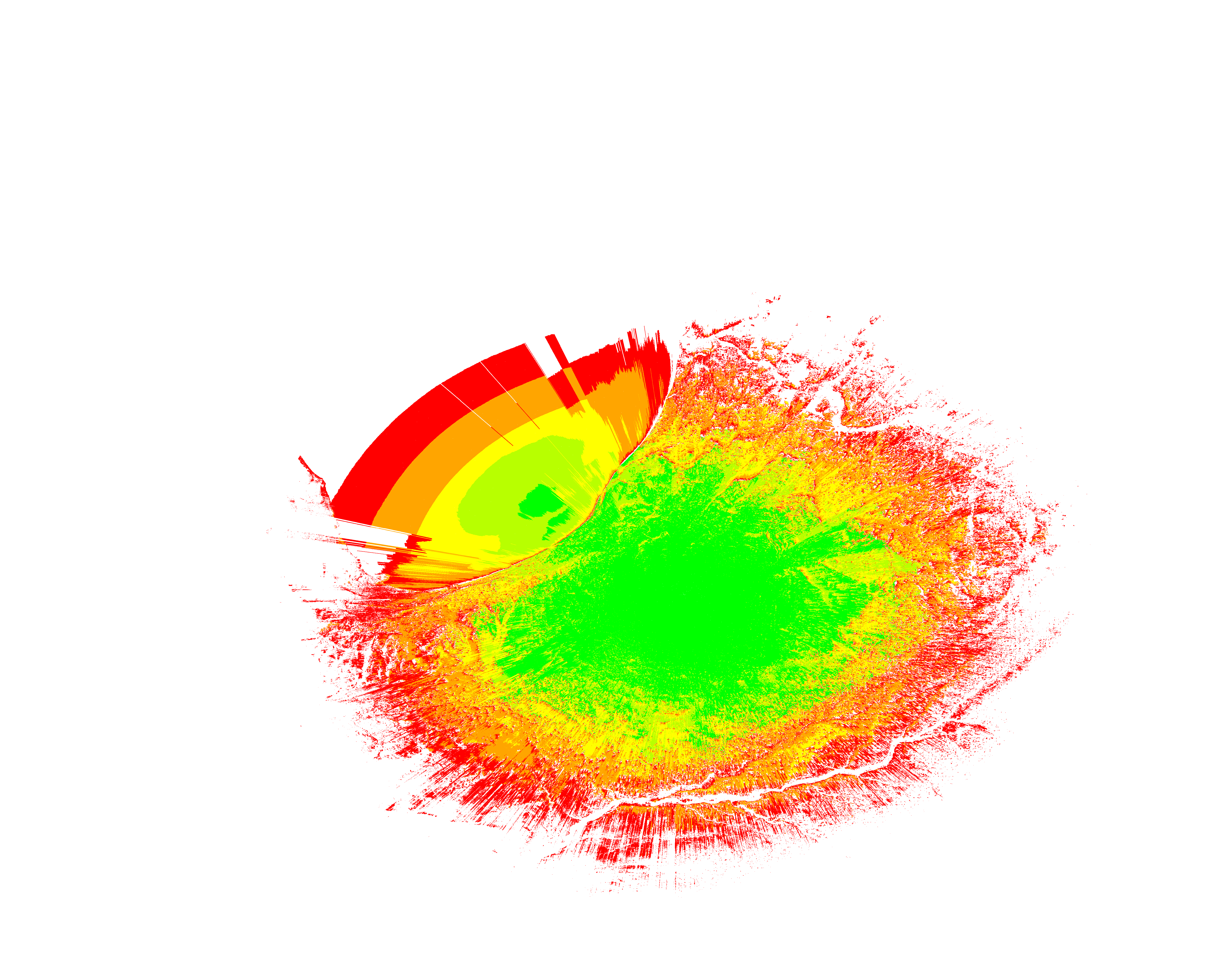 Colorful coverage map which accounts for terrain in a detailed way.