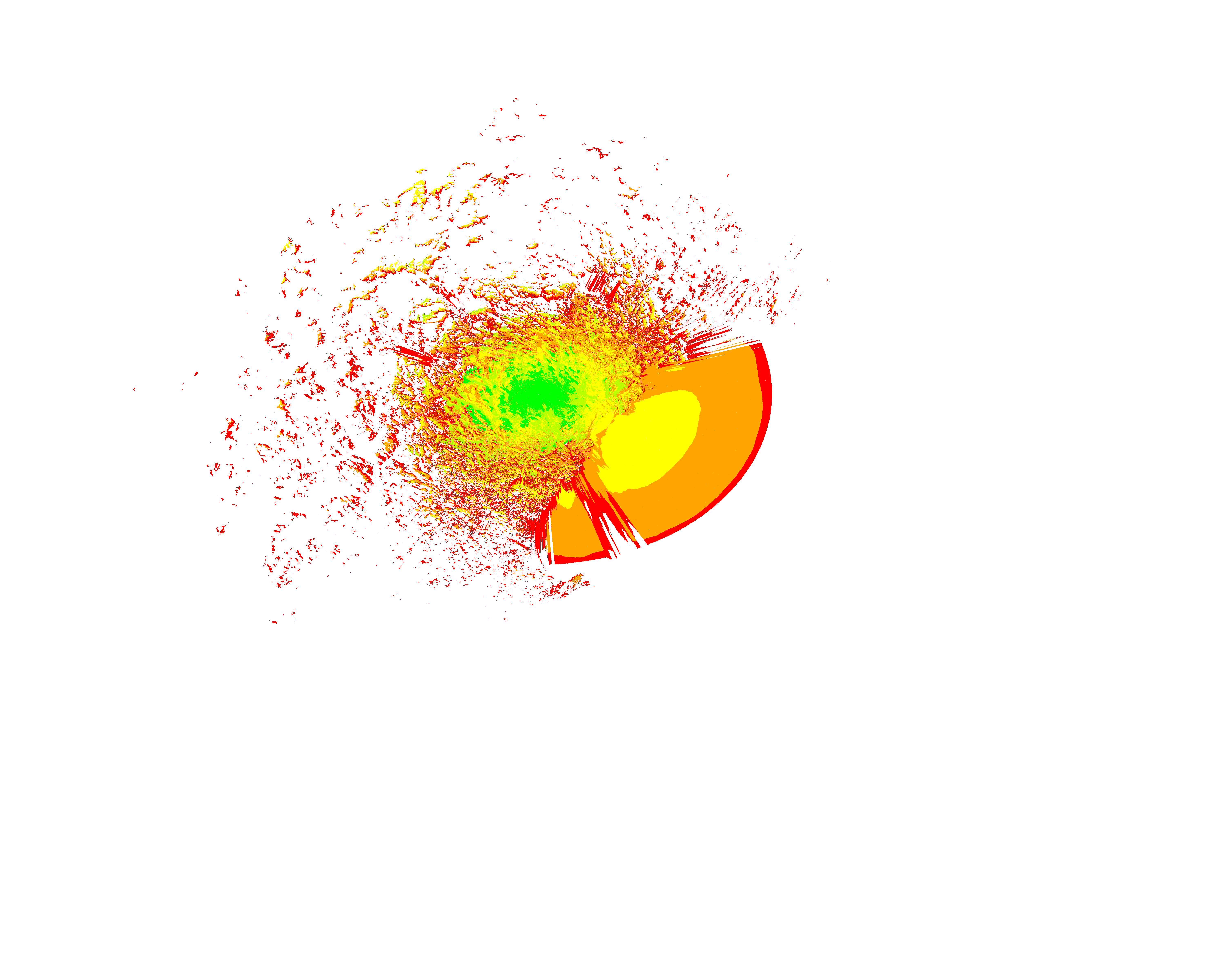 Colorful coverage map which accounts for terrain in a detailed way.