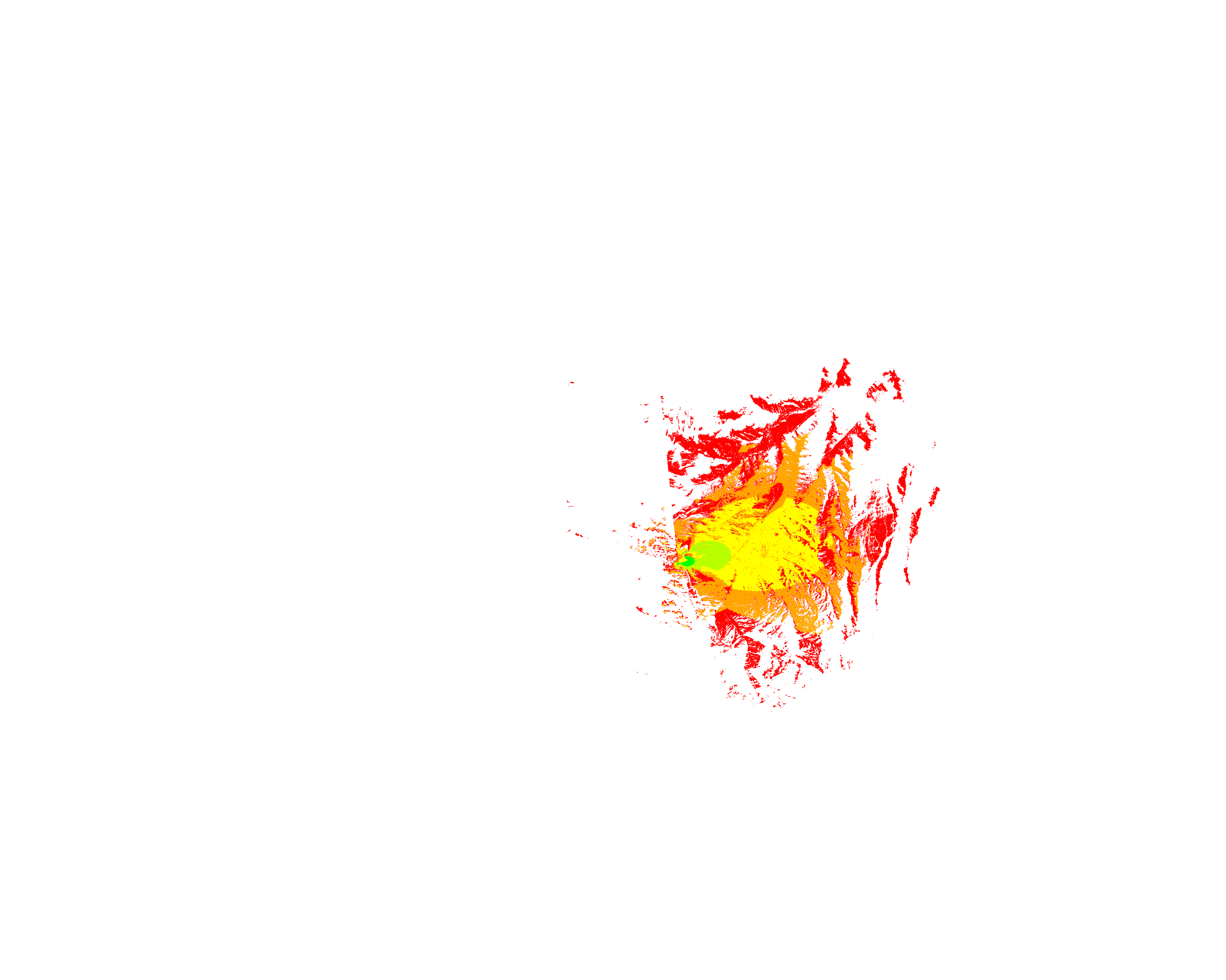 Colorful coverage map which accounts for terrain in a detailed way.