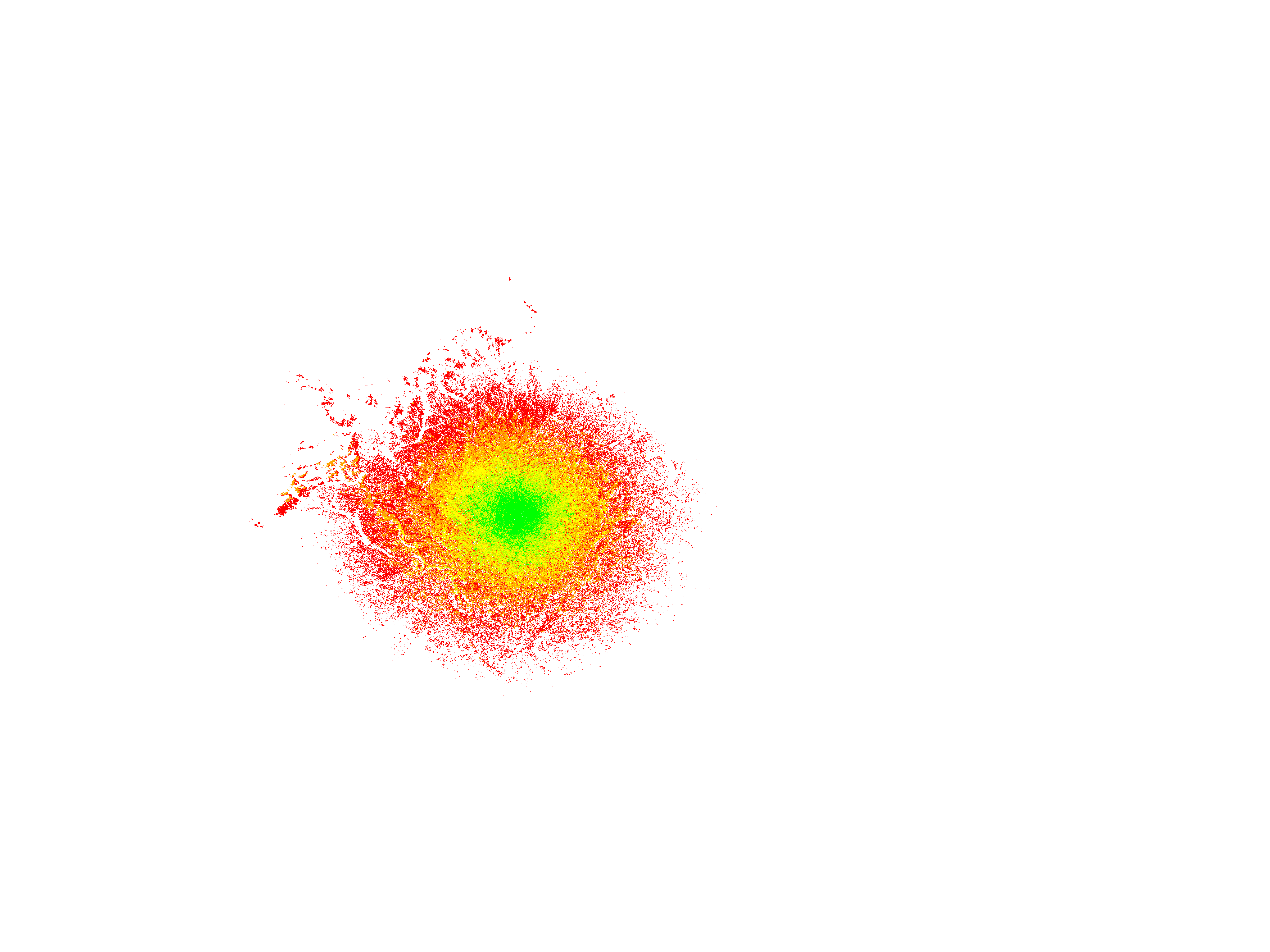 Colorful coverage map which accounts for terrain in a detailed way.
