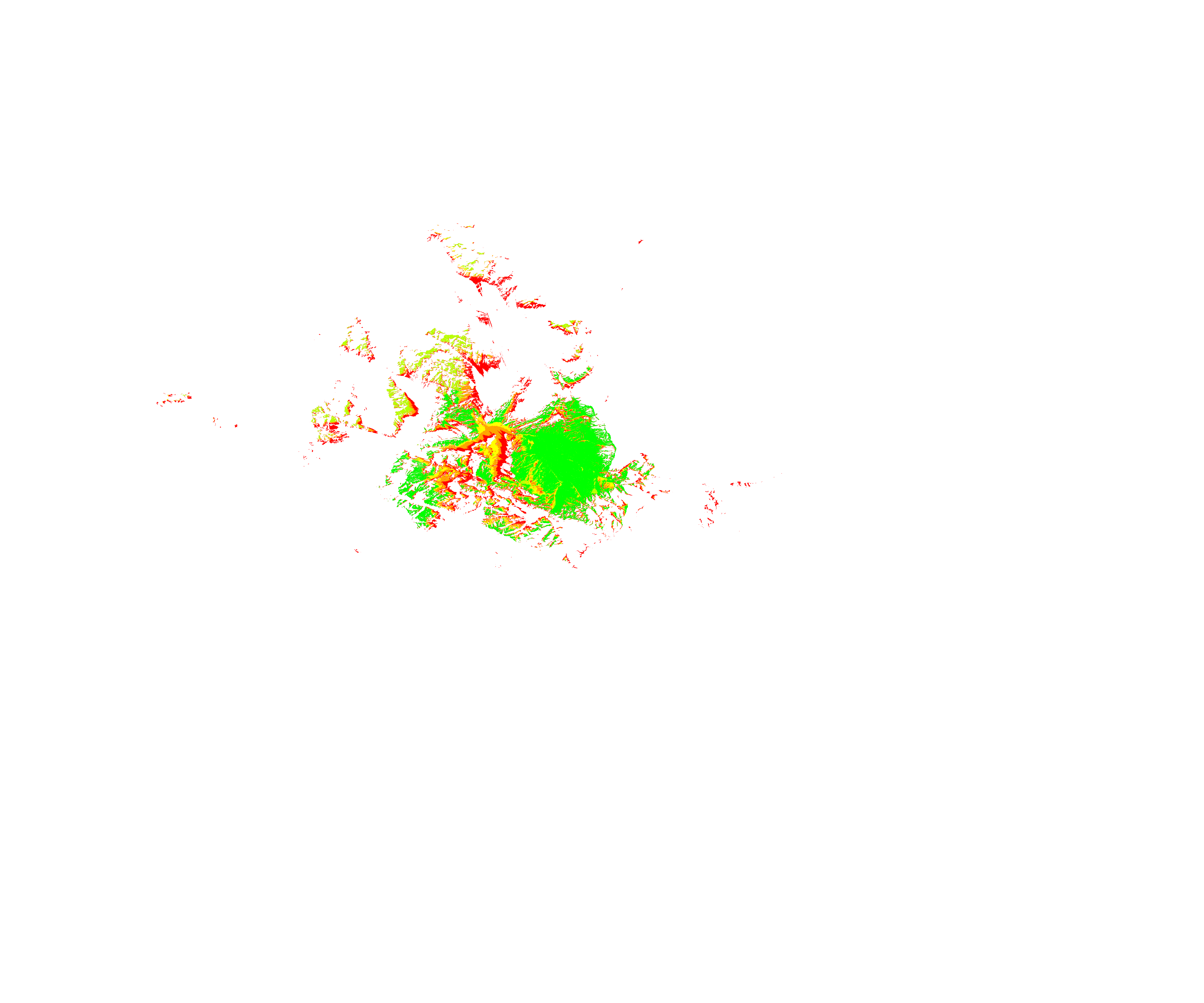 Colorful coverage map which accounts for terrain in a detailed way.