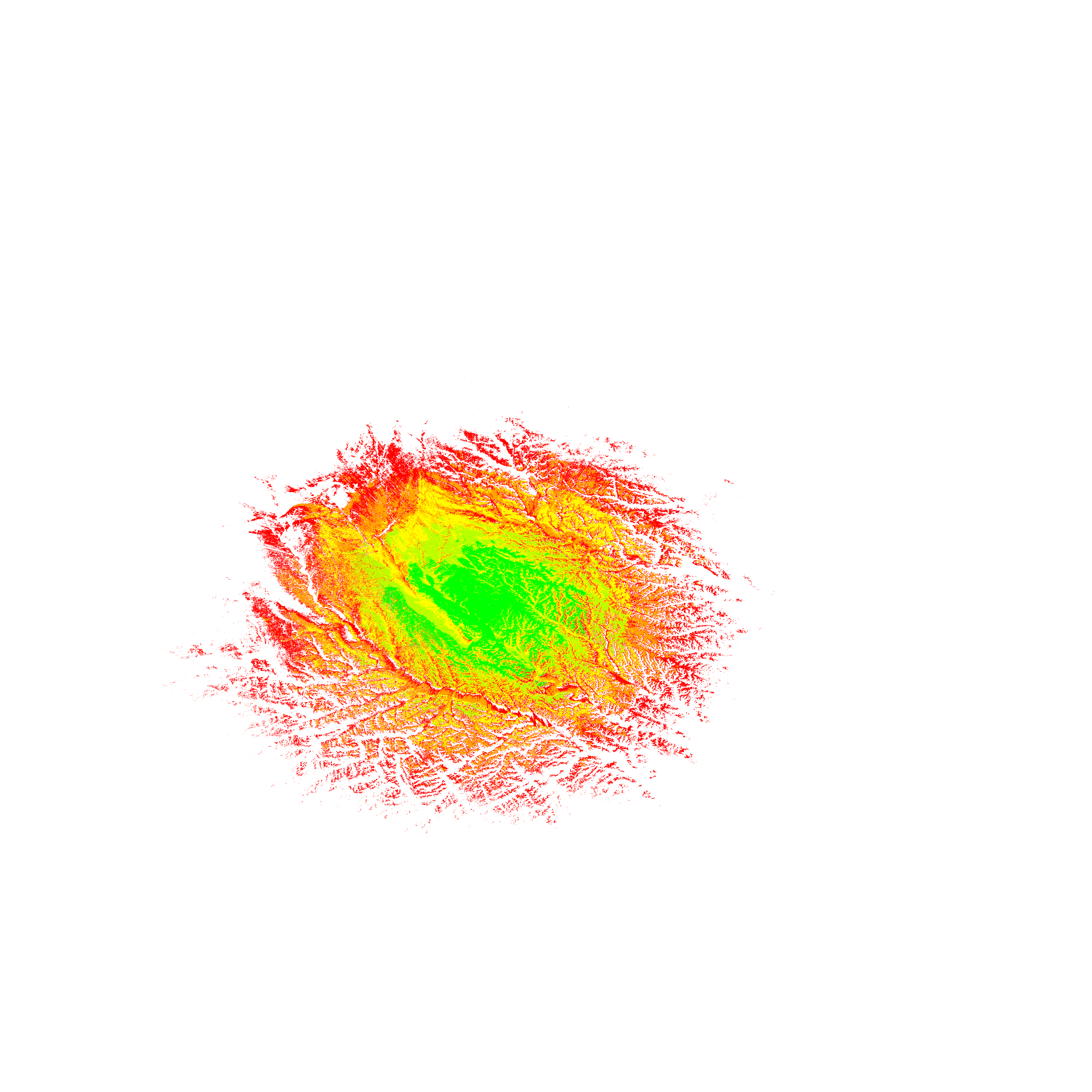 Colorful coverage map which accounts for terrain in a detailed way.