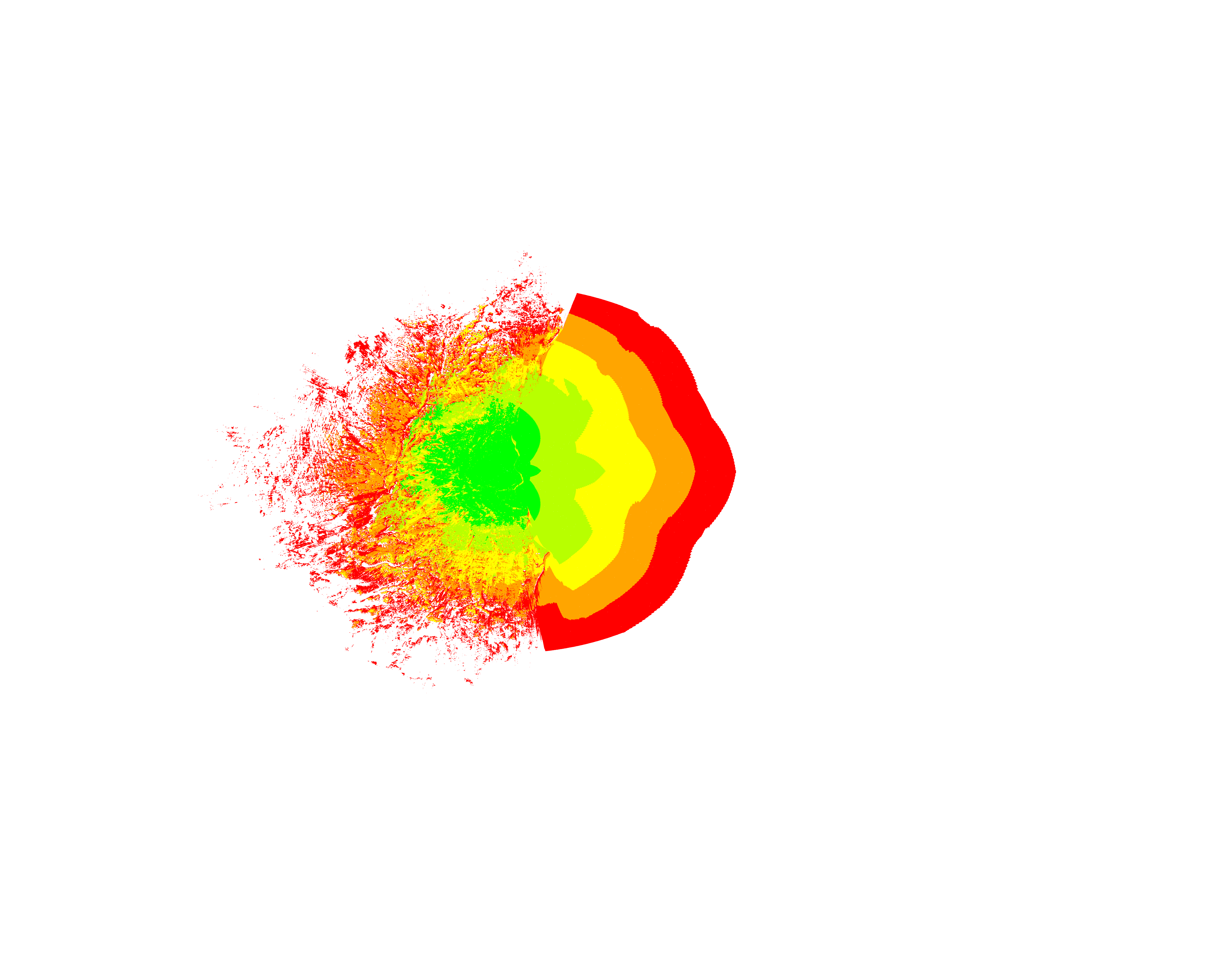 Colorful coverage map which accounts for terrain in a detailed way.