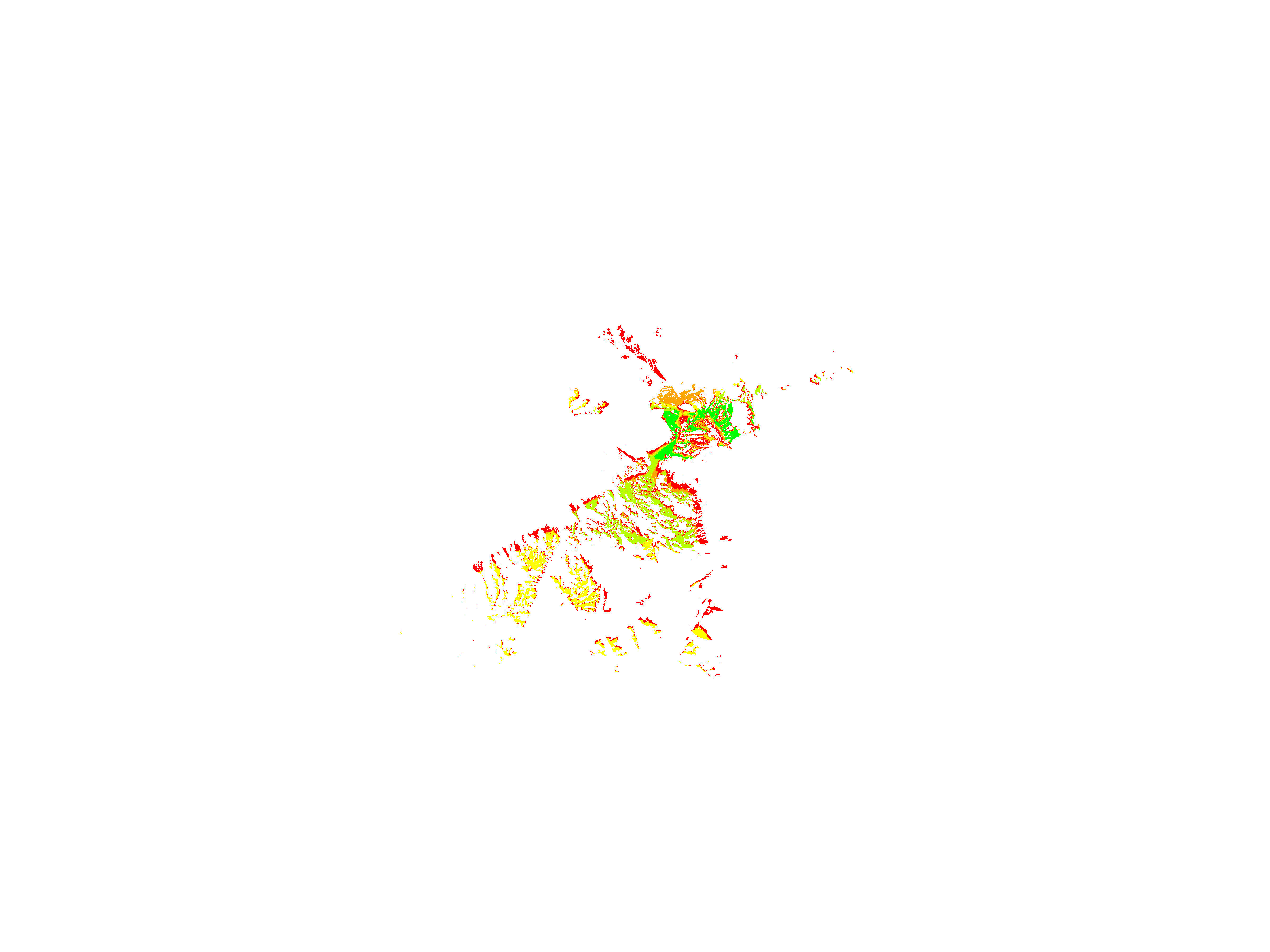 Colorful coverage map which accounts for terrain in a detailed way.