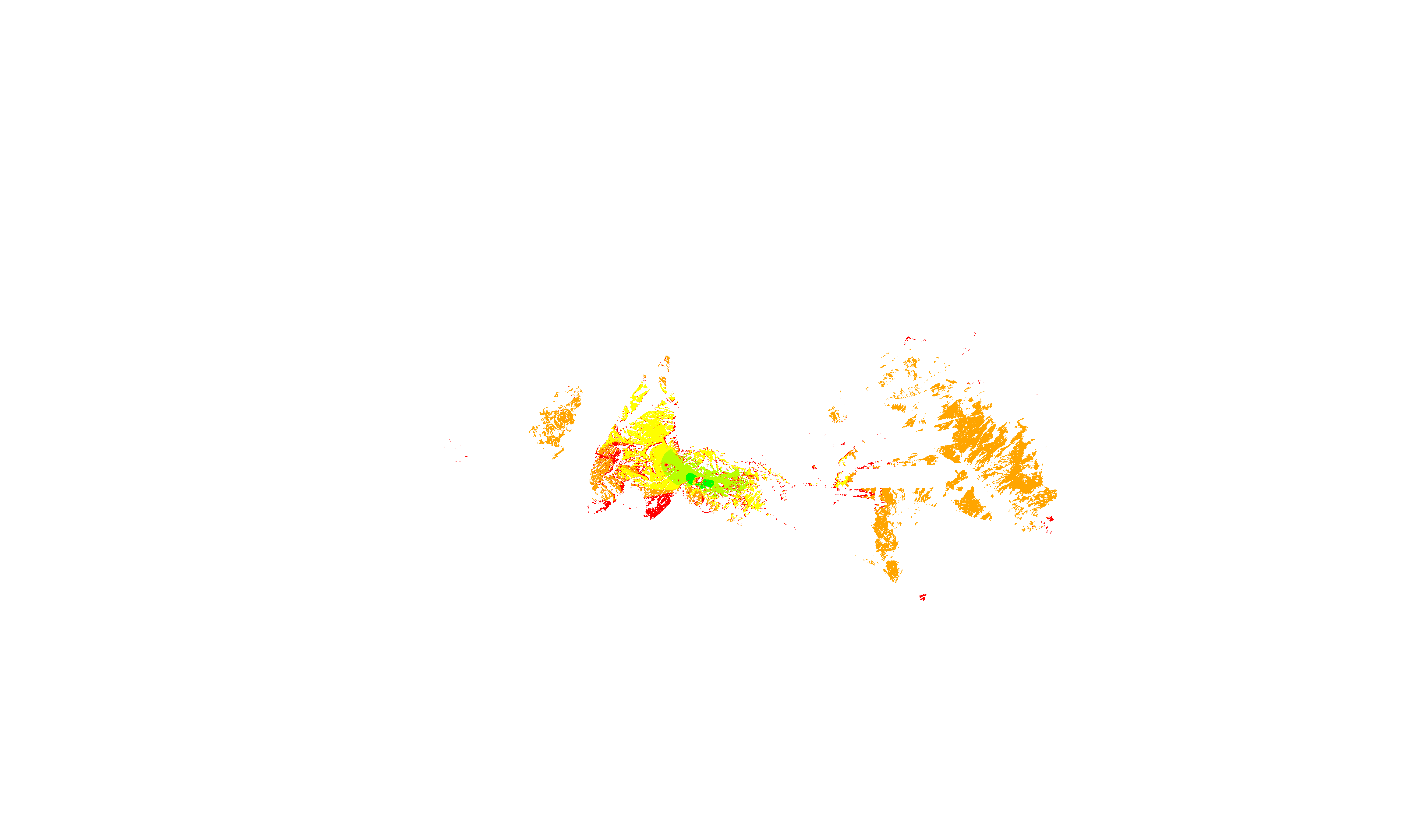 Colorful coverage map which accounts for terrain in a detailed way.