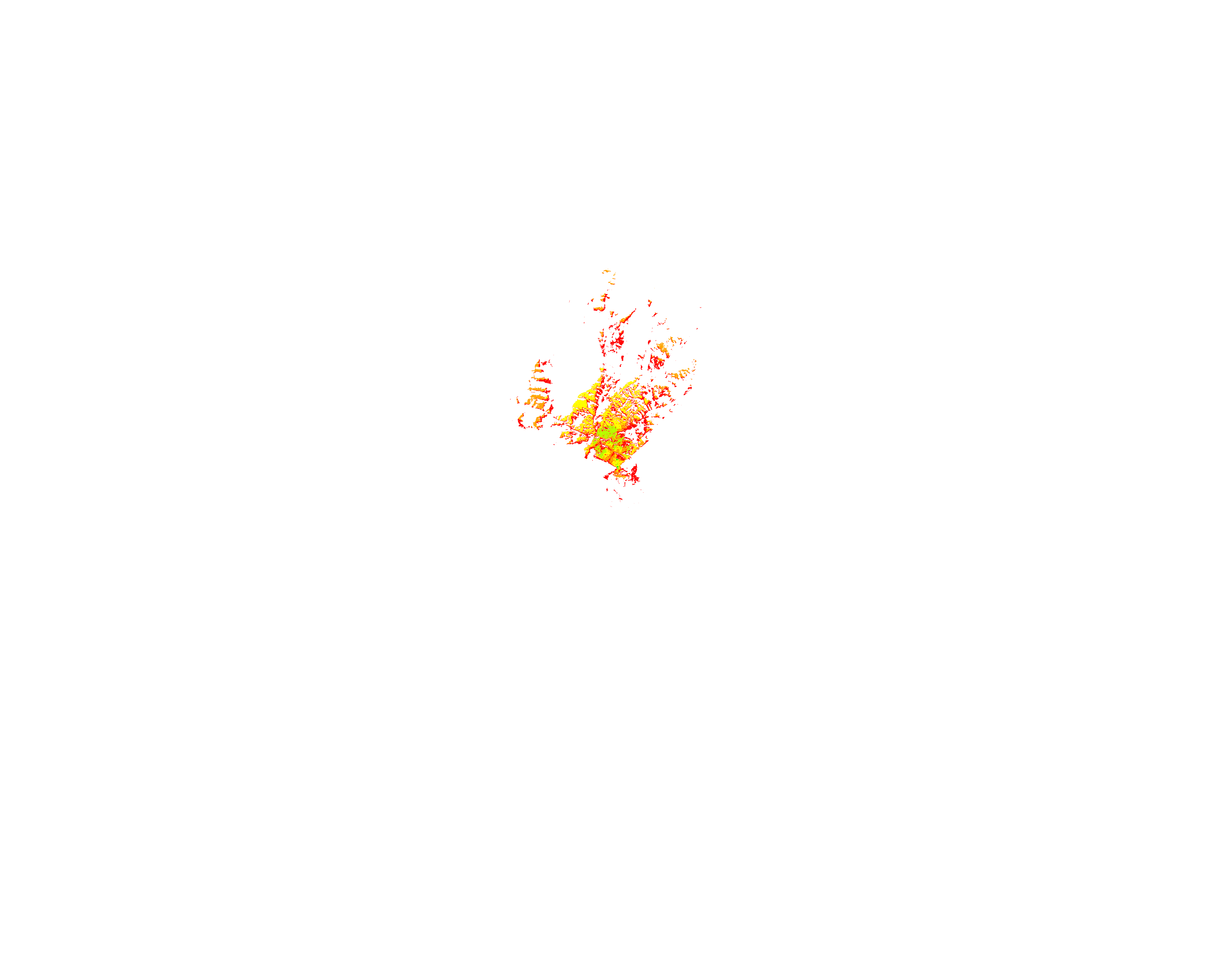 Colorful coverage map which accounts for terrain in a detailed way.