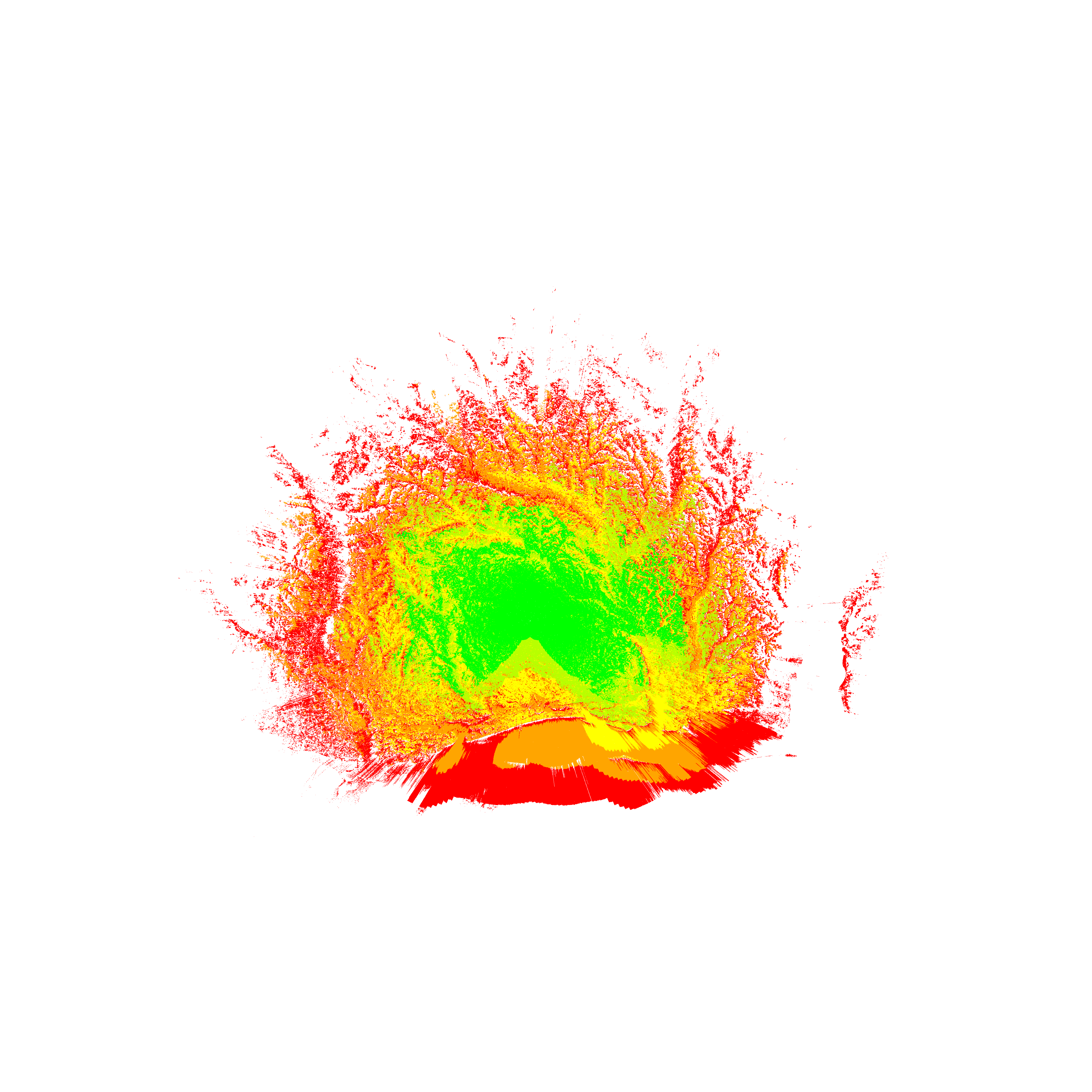 Colorful coverage map which accounts for terrain in a detailed way.