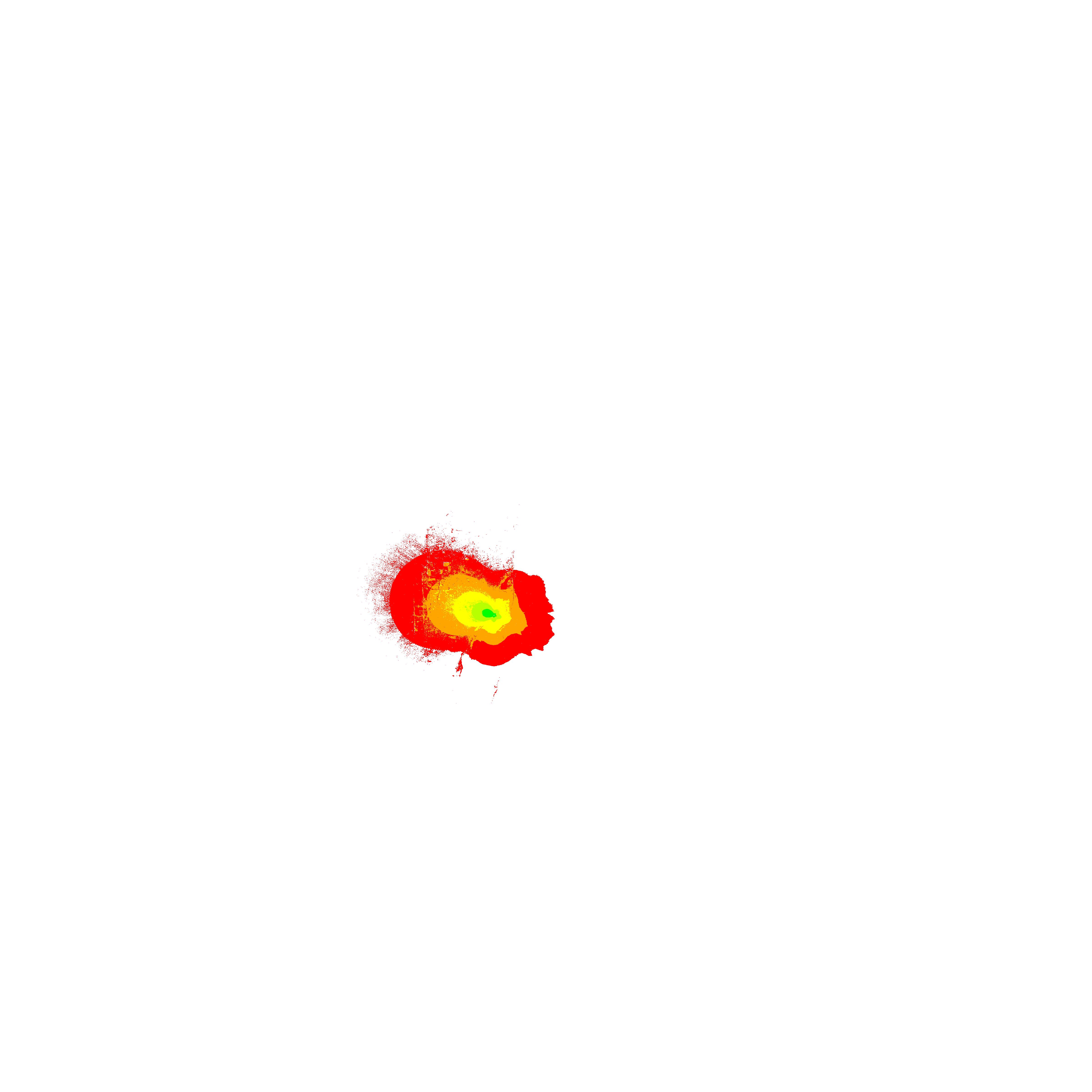 Colorful coverage map which accounts for terrain in a detailed way.