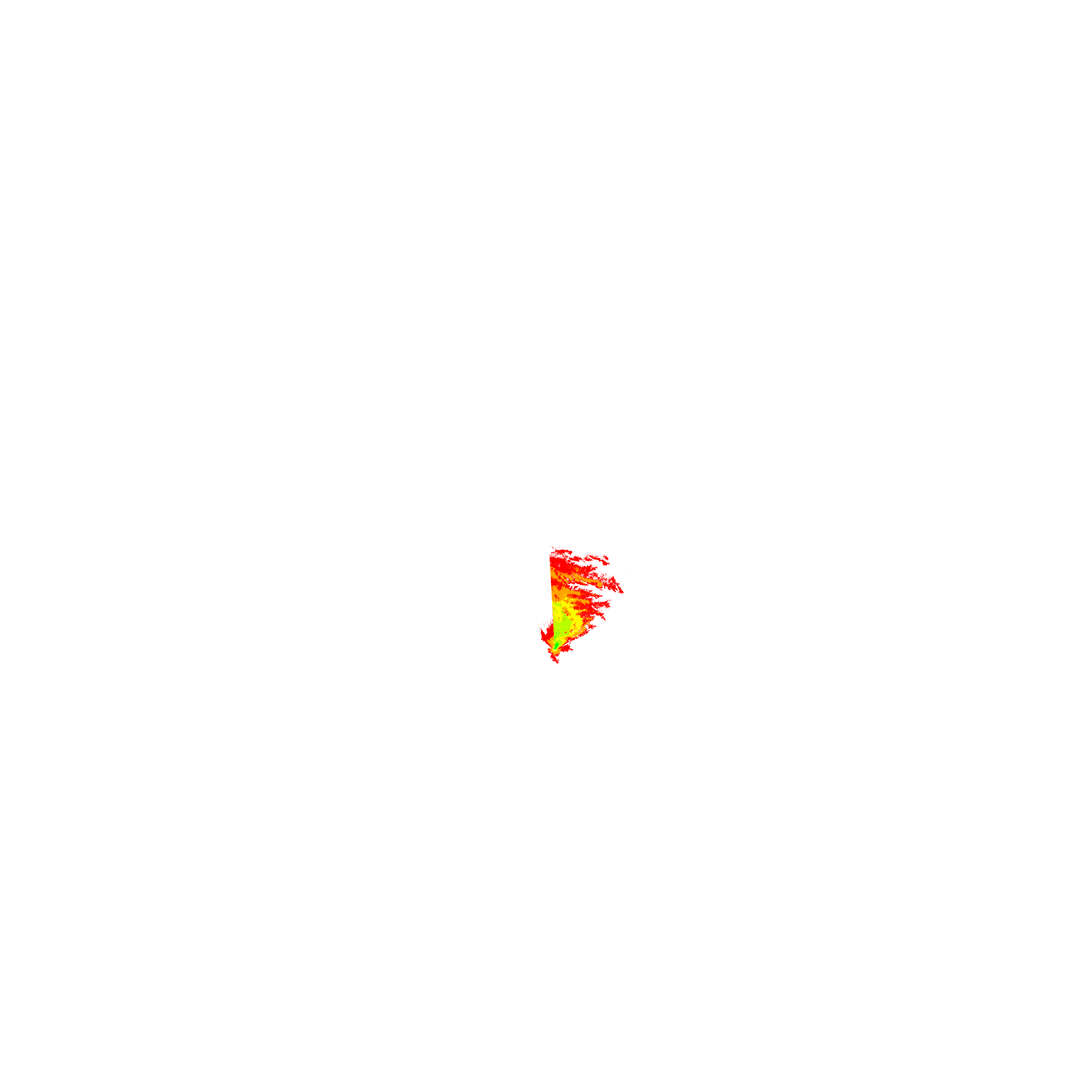 Colorful coverage map which accounts for terrain in a detailed way.