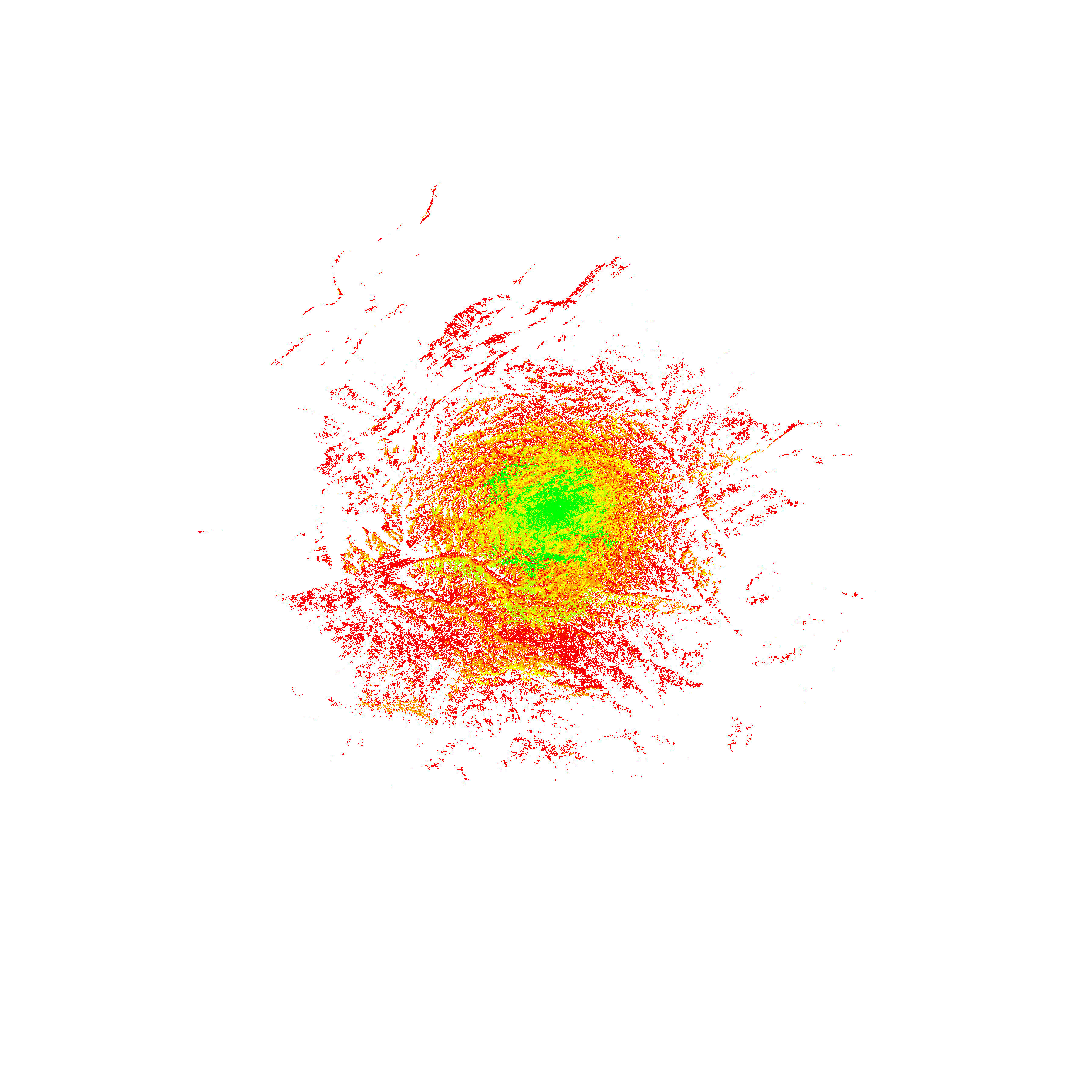 Colorful coverage map which accounts for terrain in a detailed way.