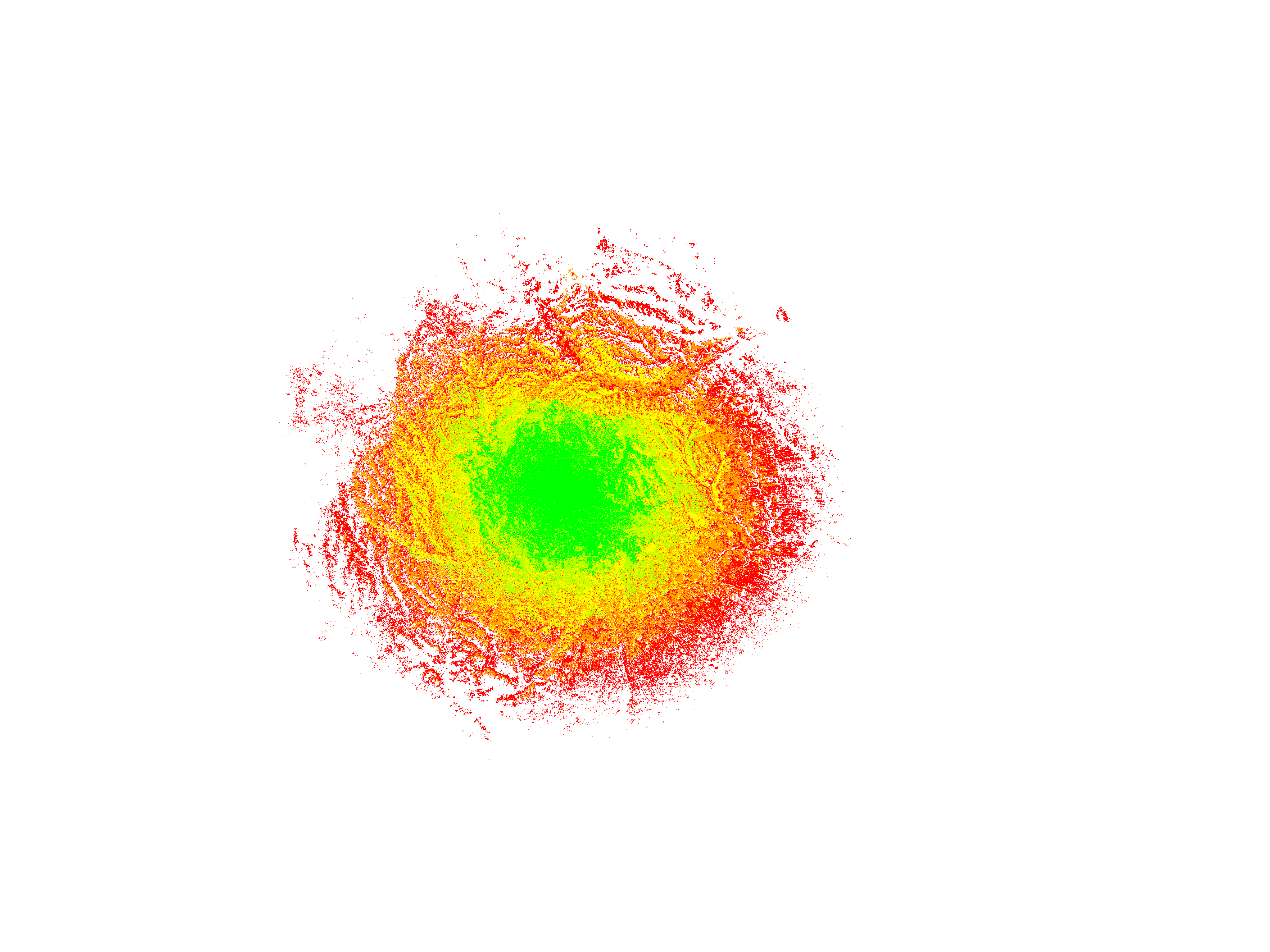Colorful coverage map which accounts for terrain in a detailed way.