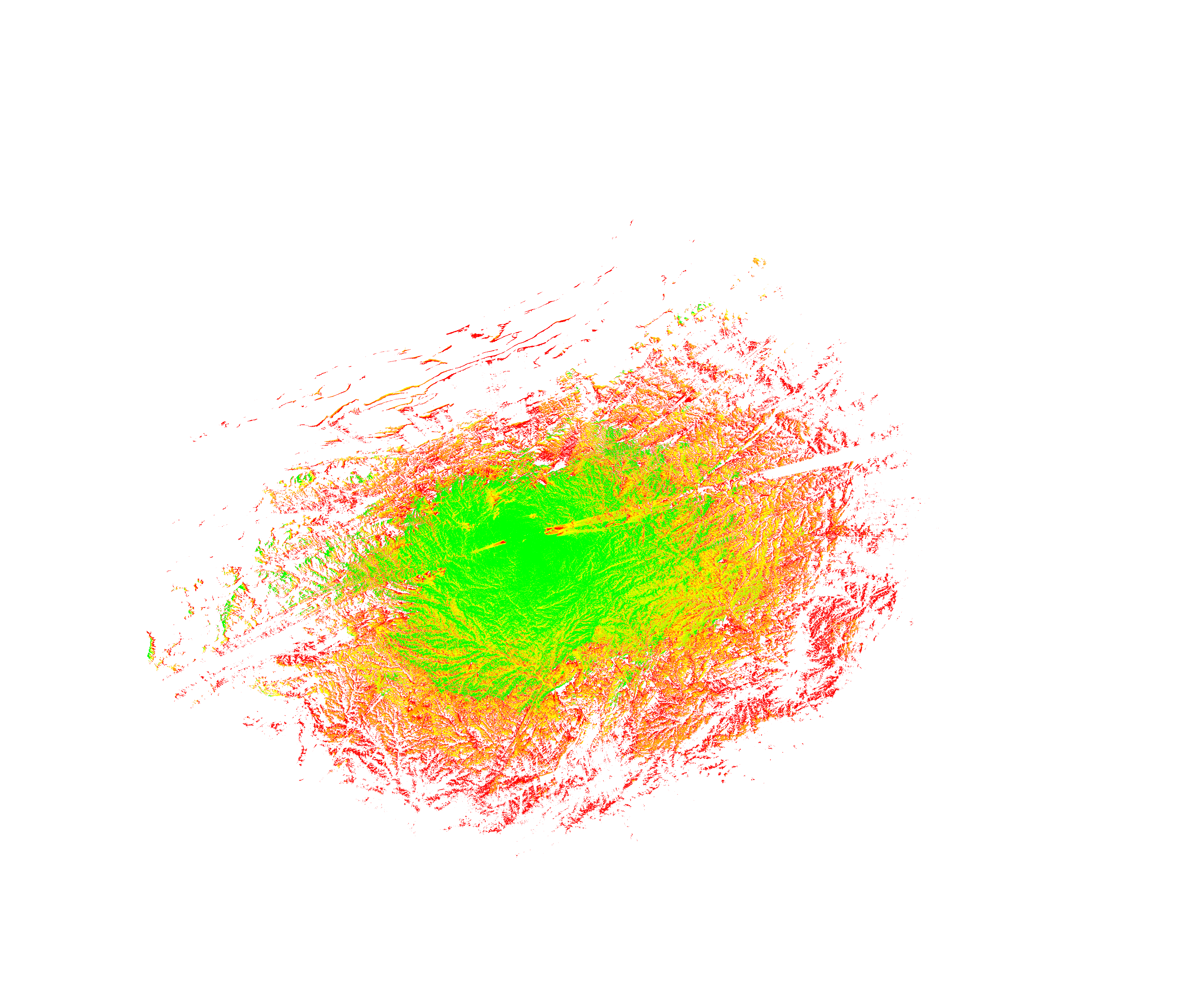 Colorful coverage map which accounts for terrain in a detailed way.