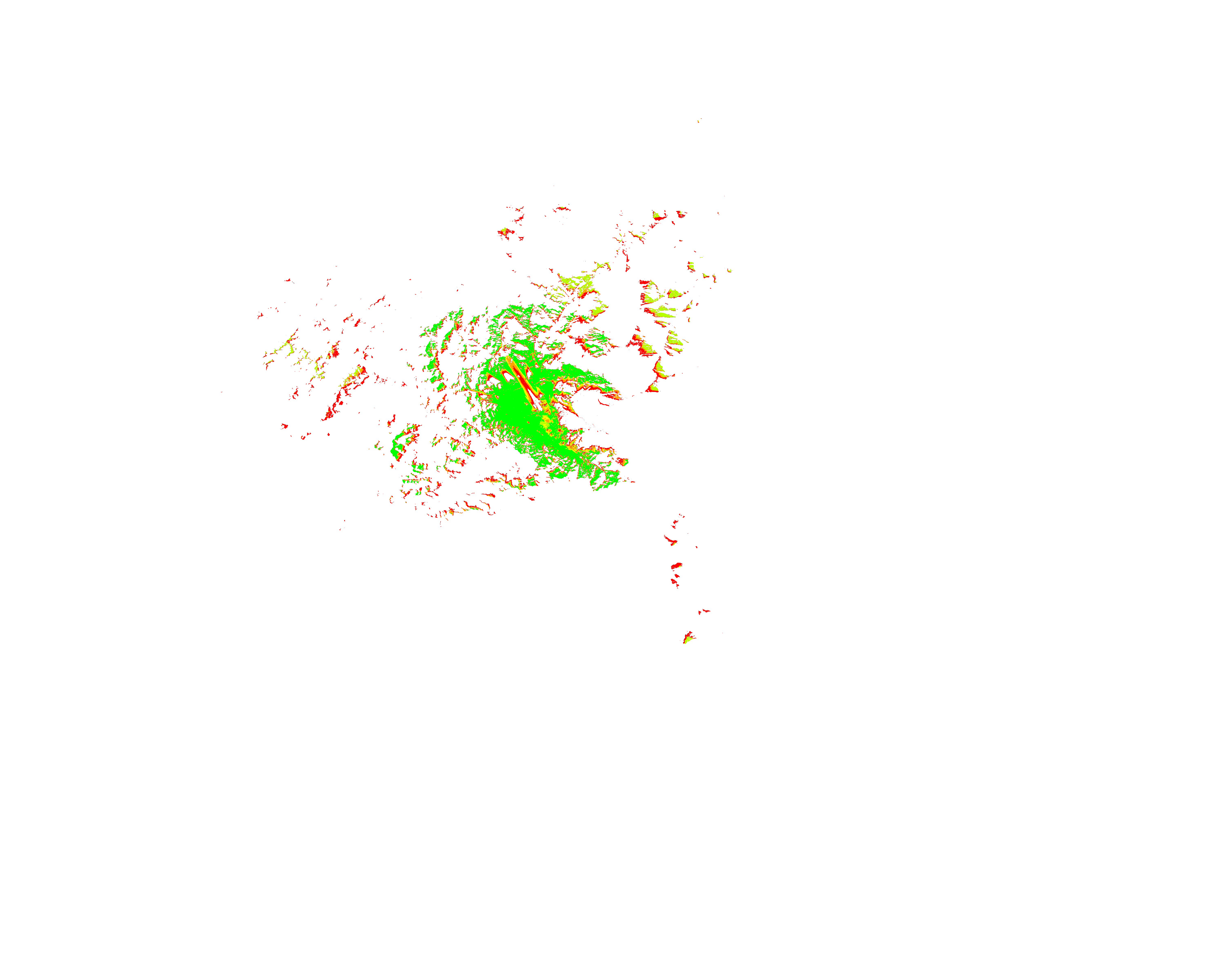Colorful coverage map which accounts for terrain in a detailed way.