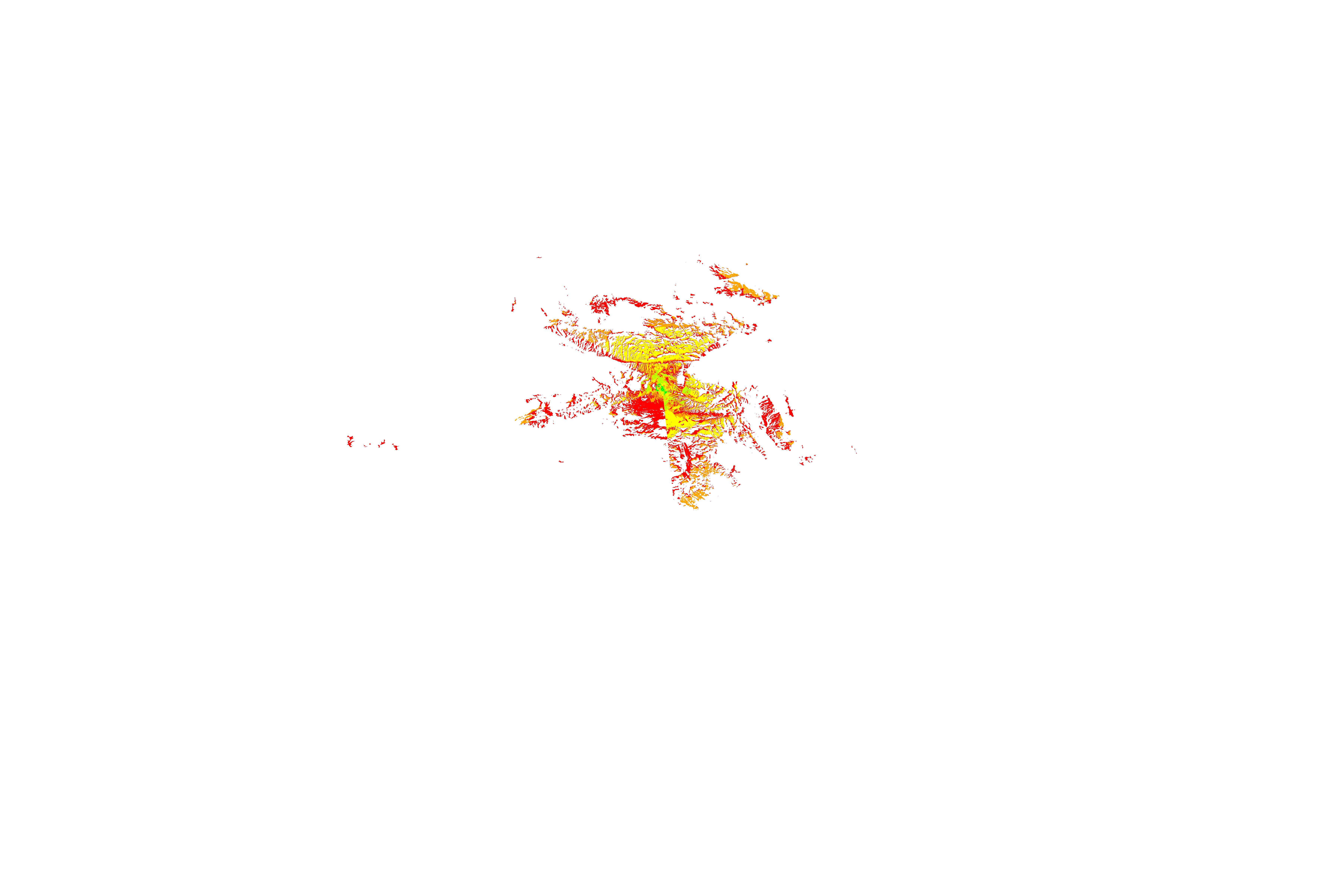 Colorful coverage map which accounts for terrain in a detailed way.