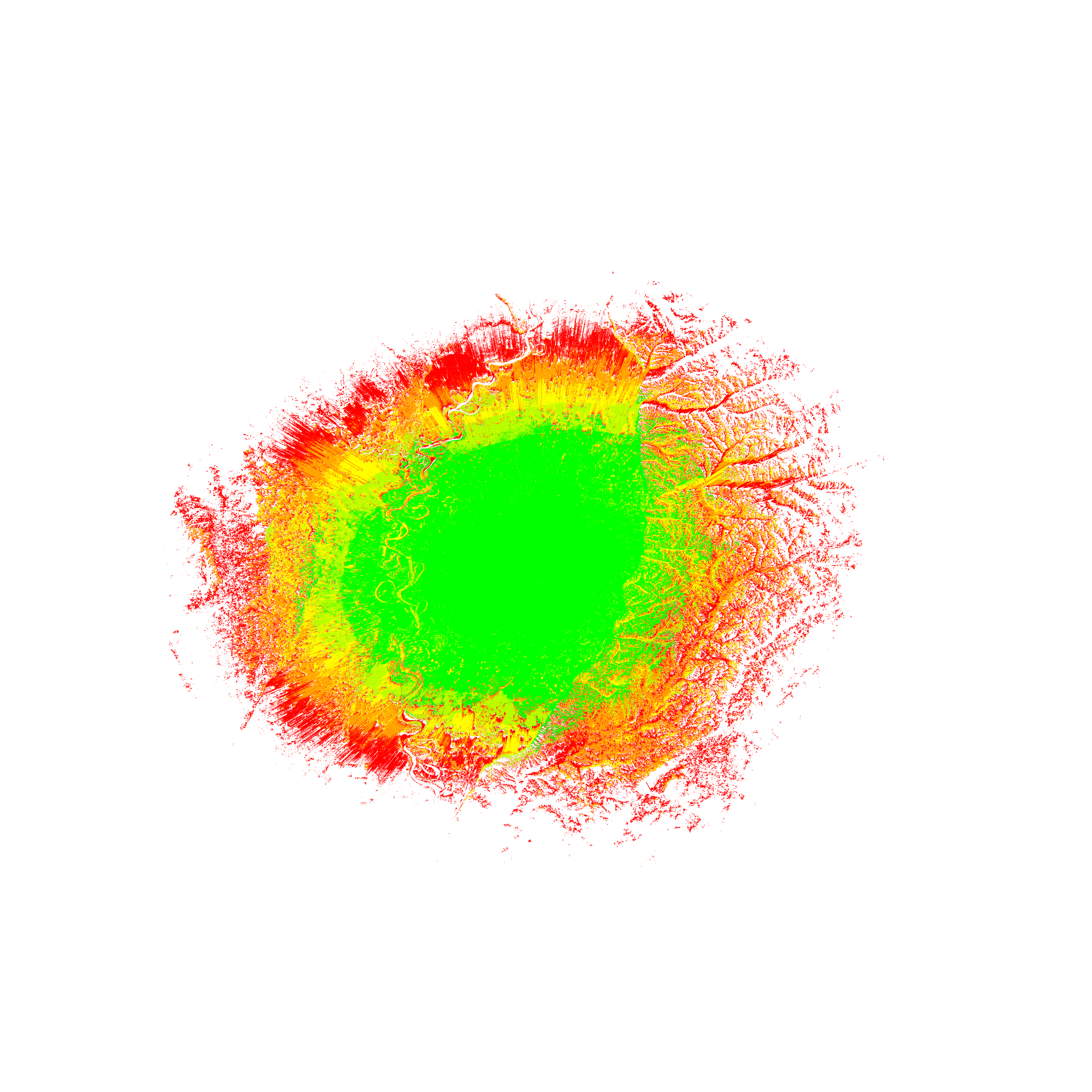 Colorful coverage map which accounts for terrain in a detailed way.