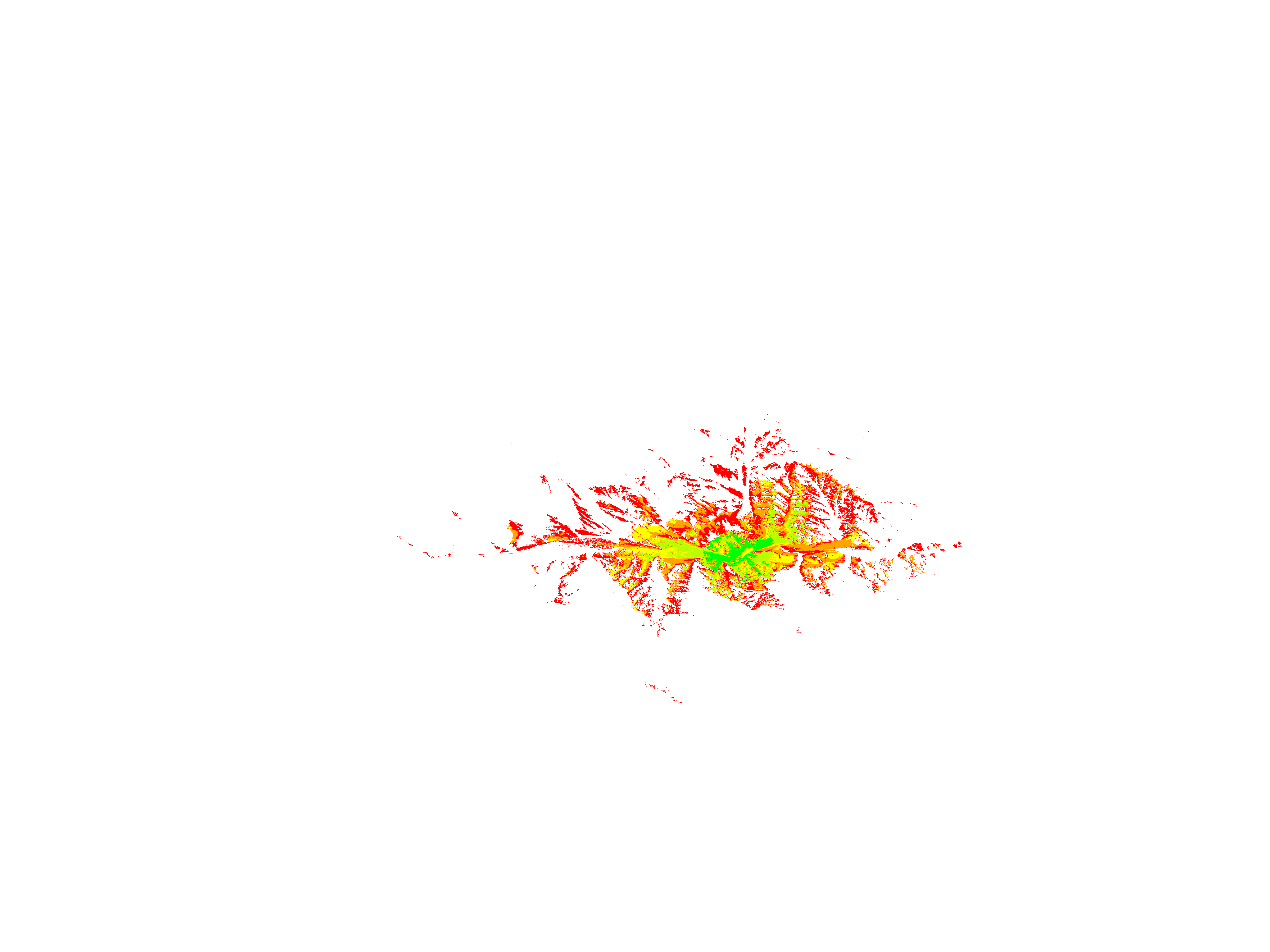 Colorful coverage map which accounts for terrain in a detailed way.