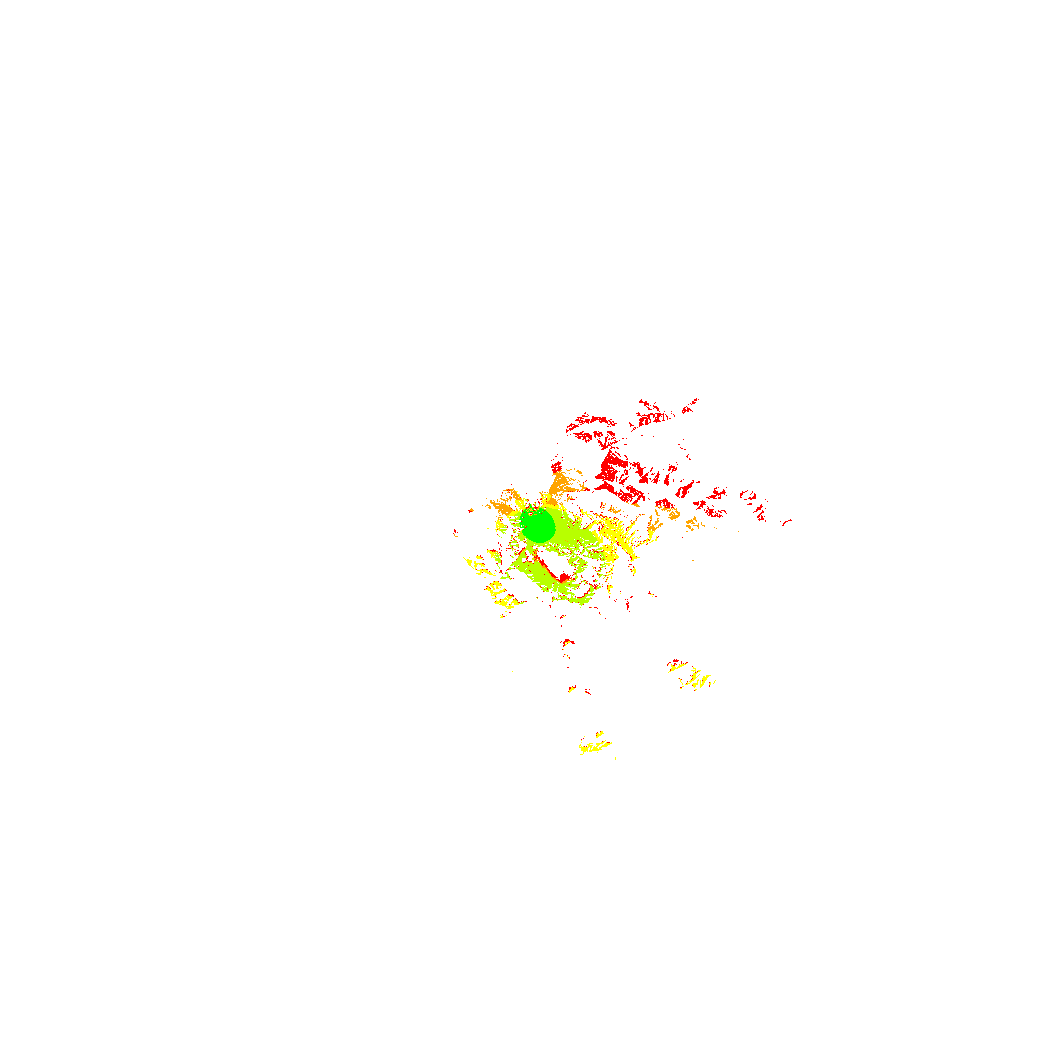Colorful coverage map which accounts for terrain in a detailed way.