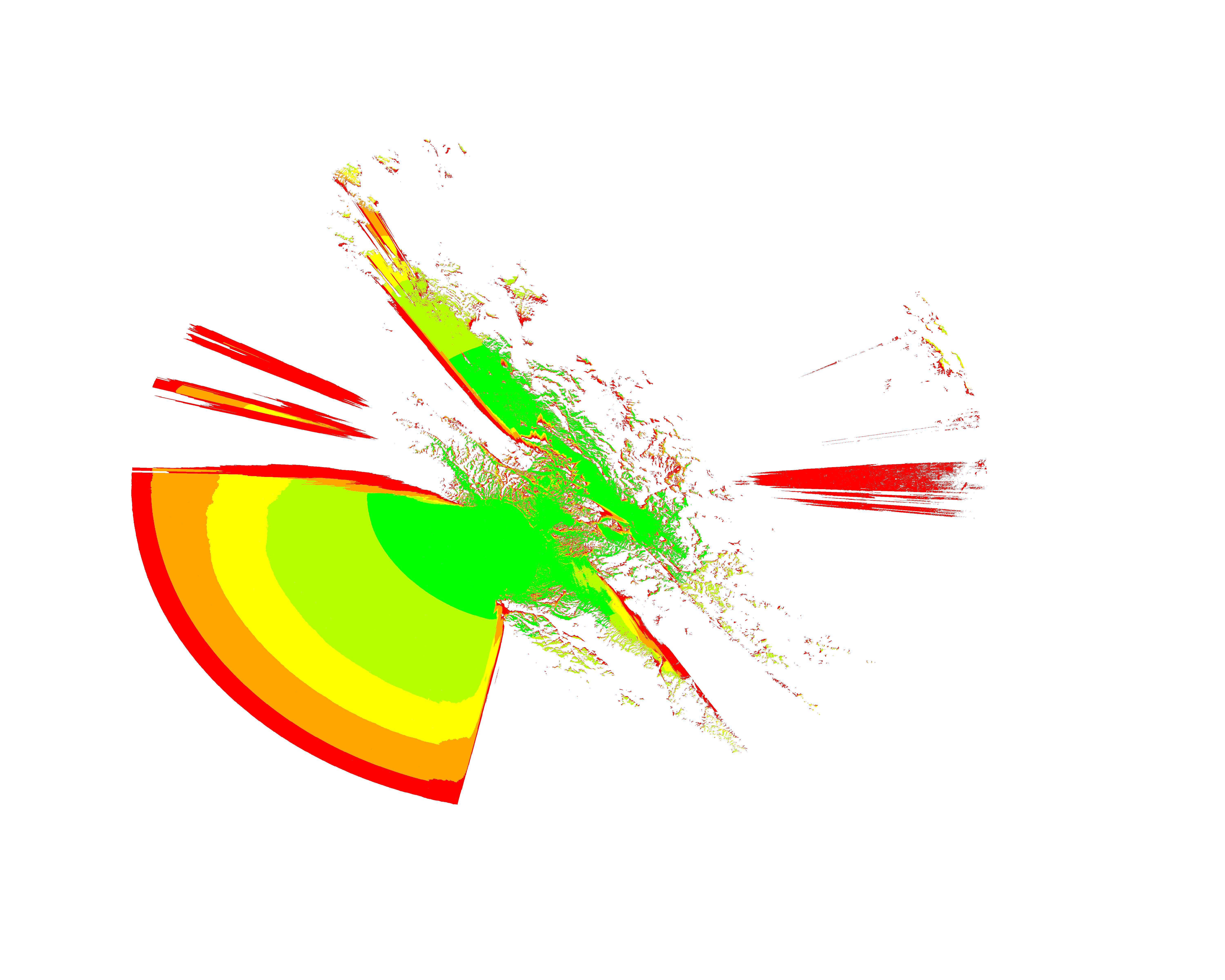 Colorful coverage map which accounts for terrain in a detailed way.