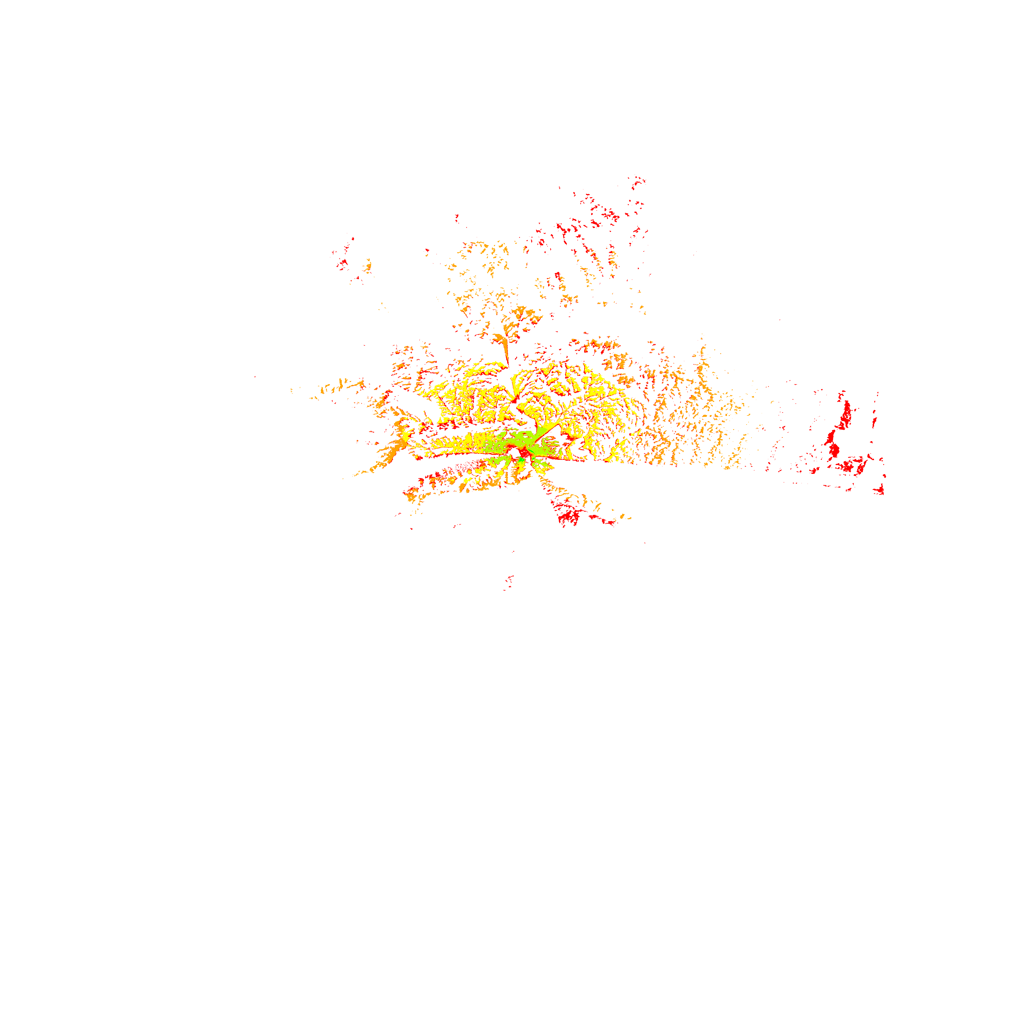 Colorful coverage map which accounts for terrain in a detailed way.