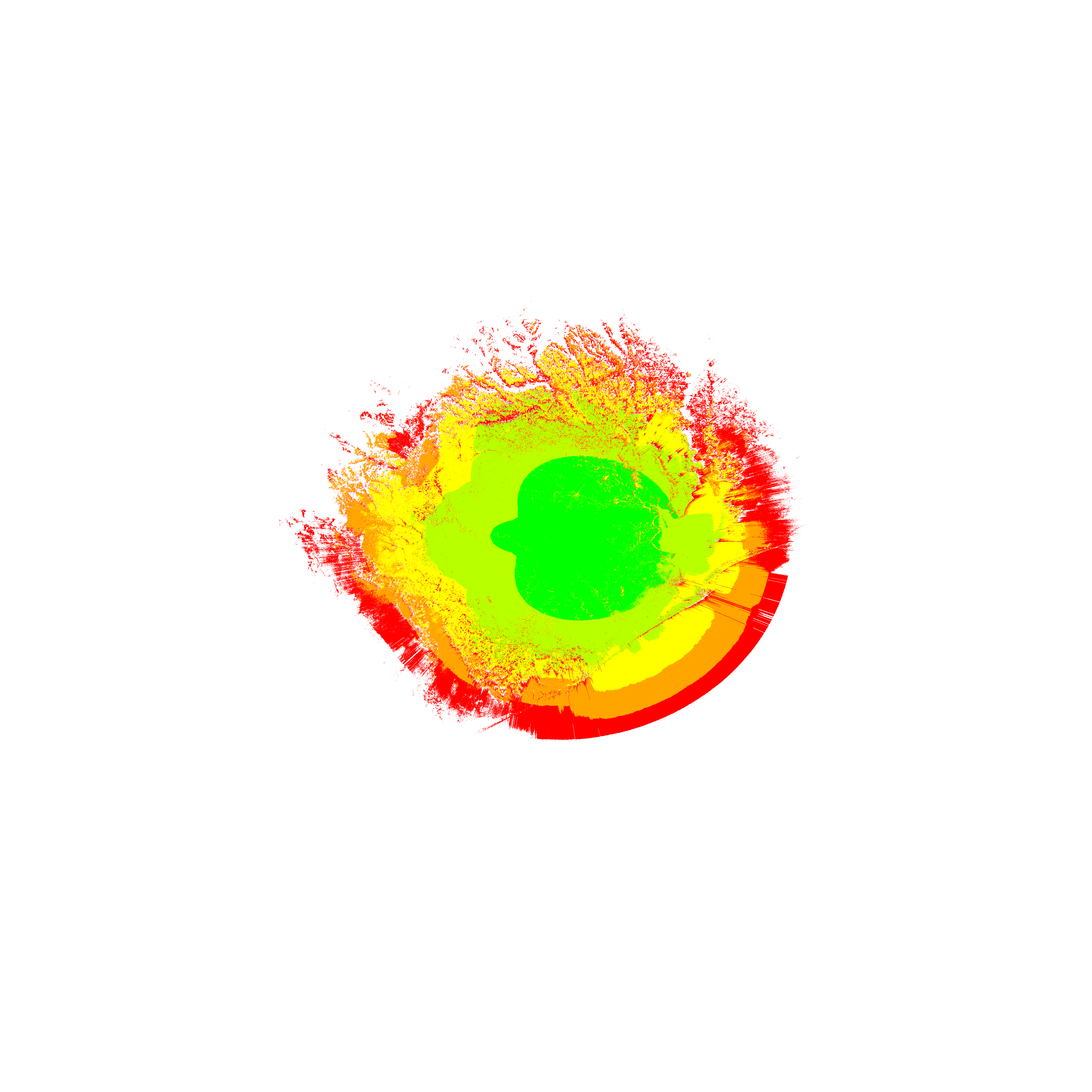 Colorful coverage map which accounts for terrain in a detailed way.