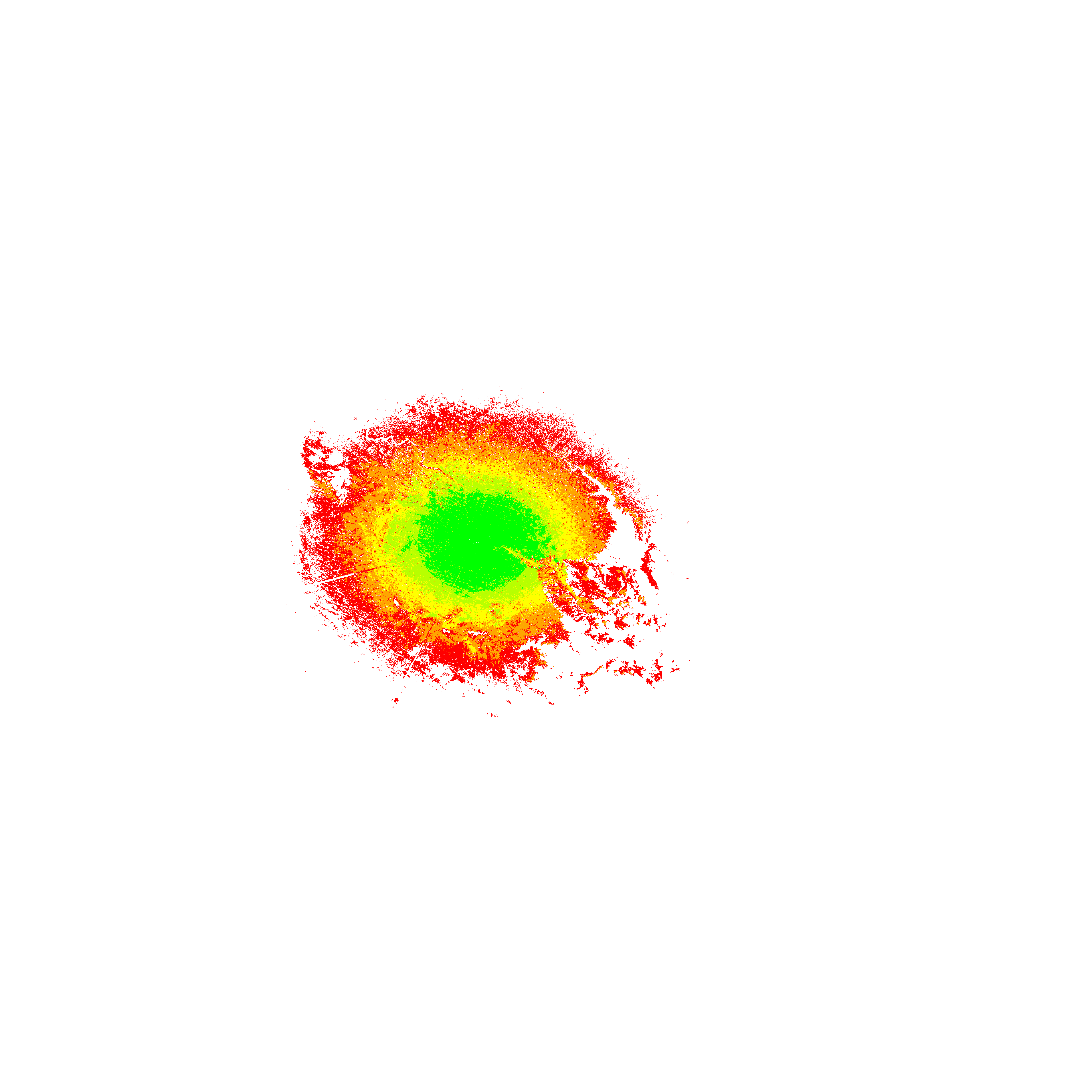 Colorful coverage map which accounts for terrain in a detailed way.