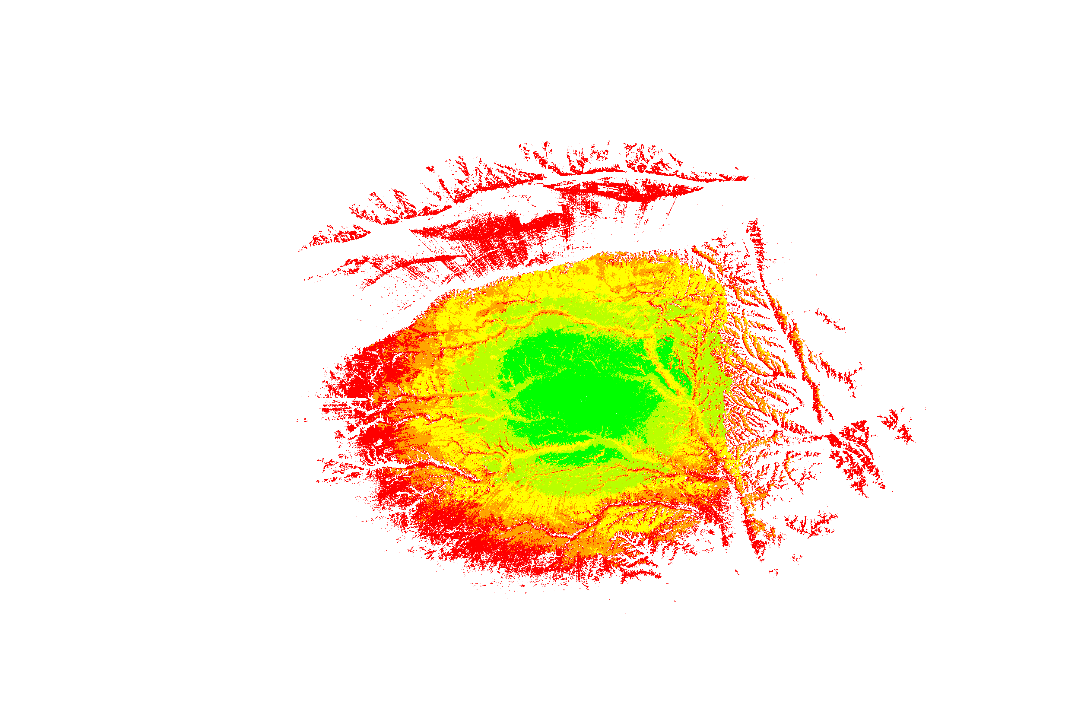Colorful coverage map which accounts for terrain in a detailed way.
