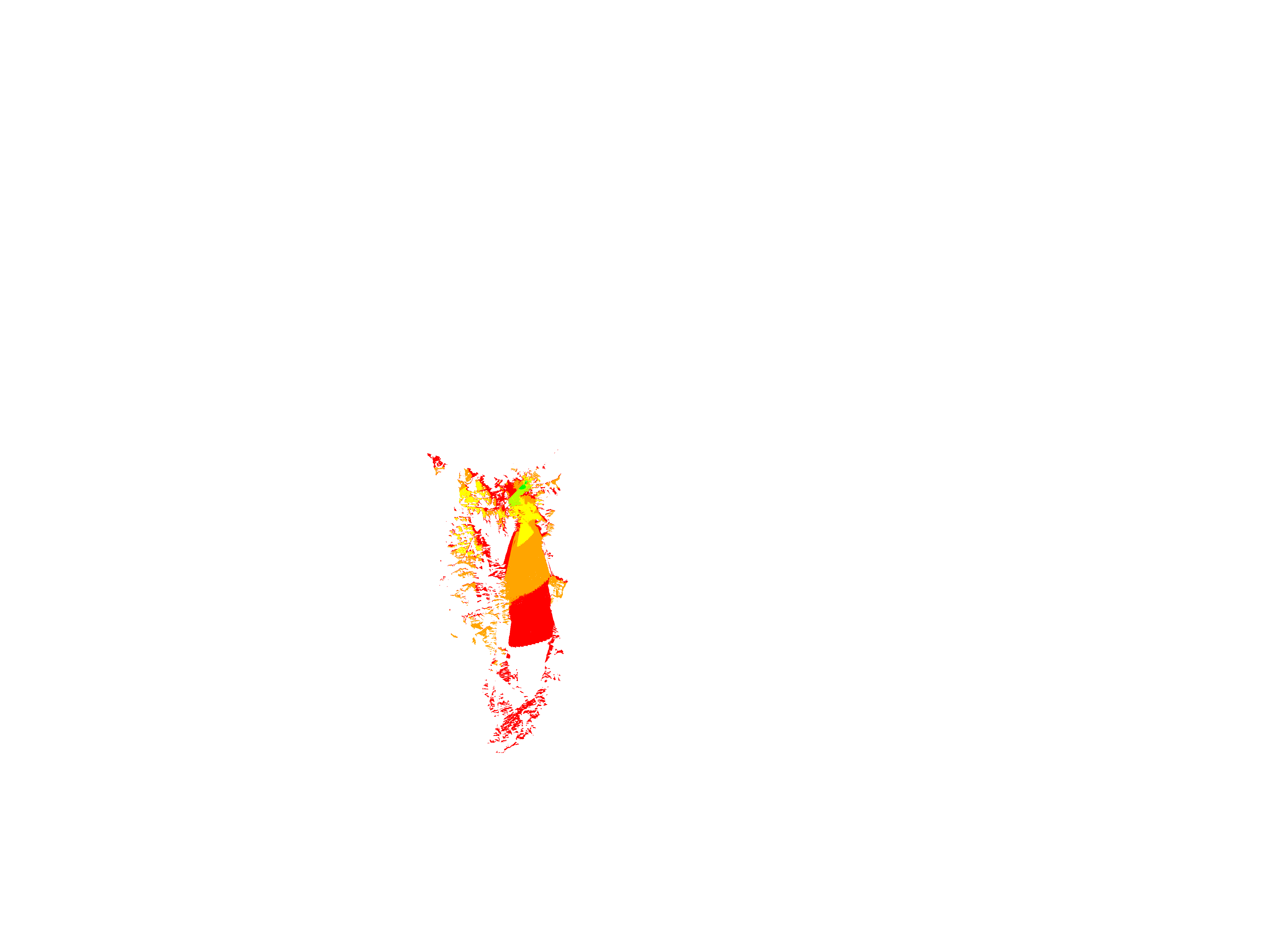 Colorful coverage map which accounts for terrain in a detailed way.