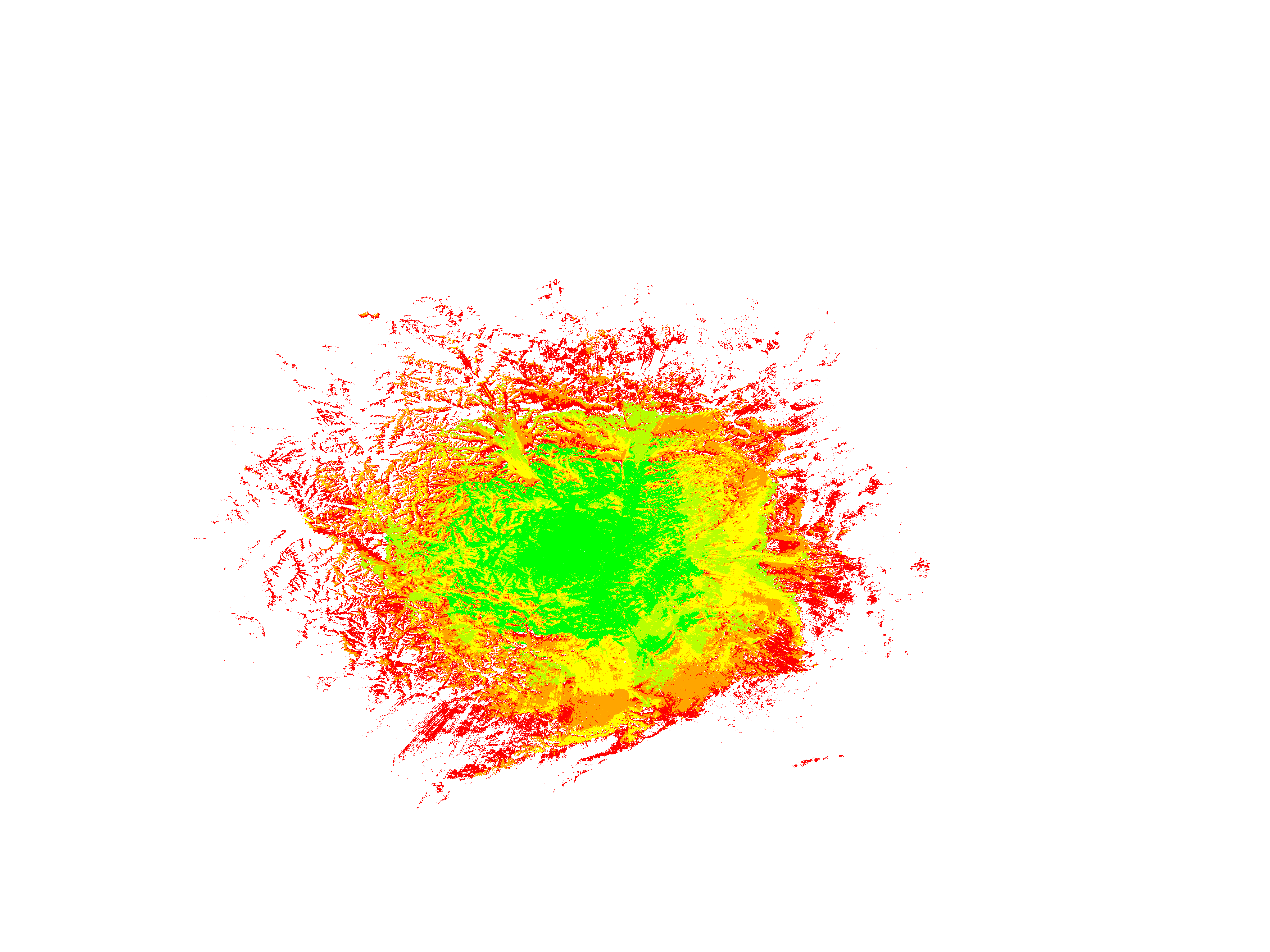 Colorful coverage map which accounts for terrain in a detailed way.