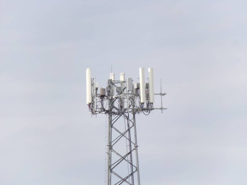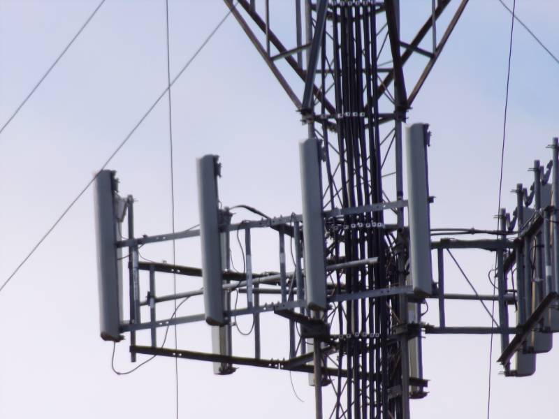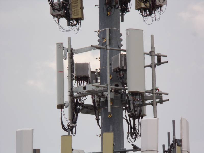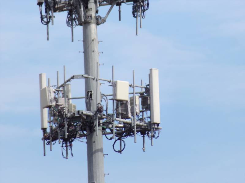 This photo shows the narrow, rounded antennas Nextel used in this region, often in sets of three or four per sector.