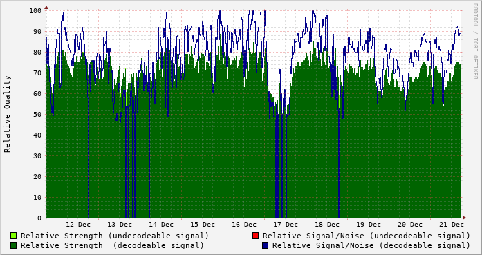Signal graphs for KDTV-DT at El Dorado Hills, CA-AA6CG experimental Yagi