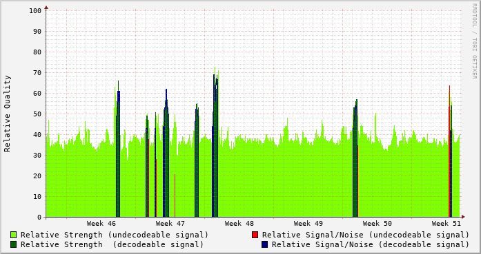 Signal graphs for WFQX-TV at Kent County, MI tuner1