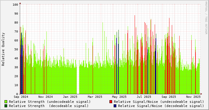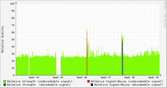 Signal graphs for WISE-TV at Kent County, MI tuner1