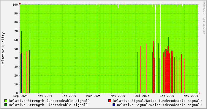 Signal graphs for WTTW at Dodgeville, WI-WJ9H tuner0