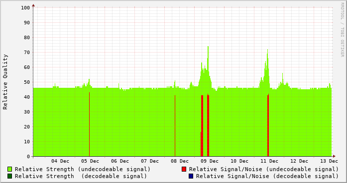 Signal graphs for KUOK-CD at Kismet, KS tuner0