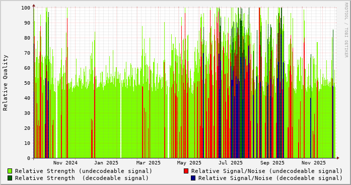 Signal graphs for WGBO-DT at Gladstone, MI-KD8HOR tuner0