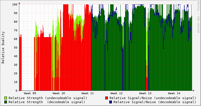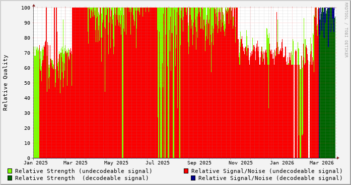 Signal graphs for VBA257 at Grimsby Mtn, ON-CXGY Vertical 3.0 tuner0