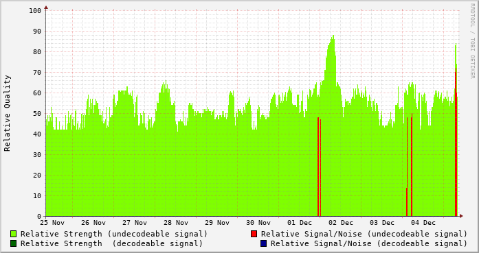 Signal graphs for KGCW at Garland, NE-4K-Fixed UHF/VHF/LowV Vert Dipole tuner0